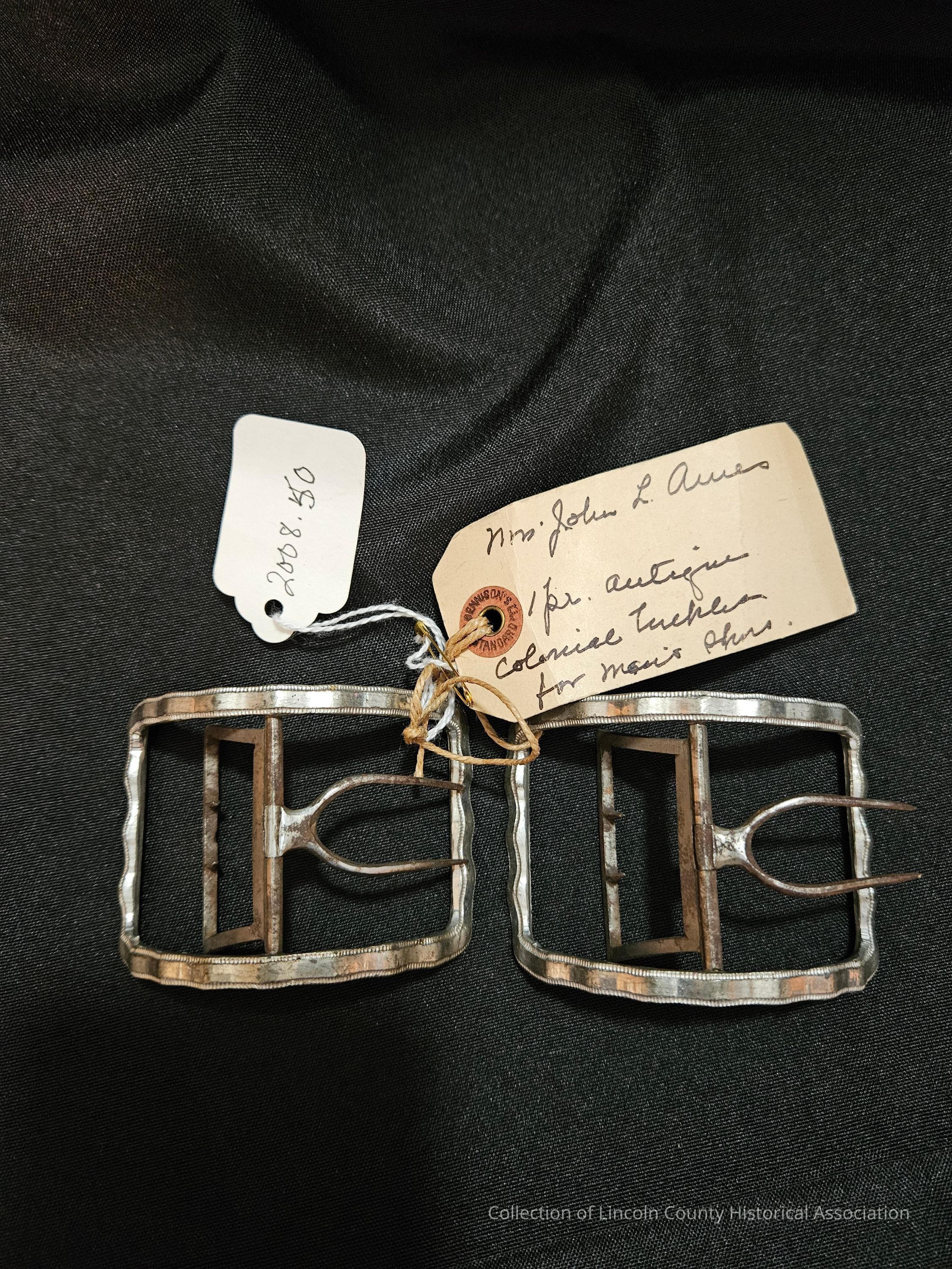 One pair of nickel colonial shoe buckles.