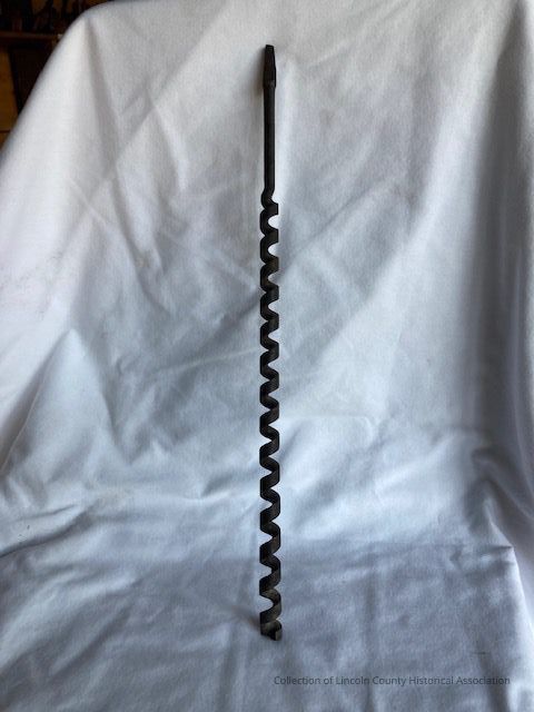 Auger bit, possibly entirely steel. Has fifteen spirals. Designed to be used with a bit brace.