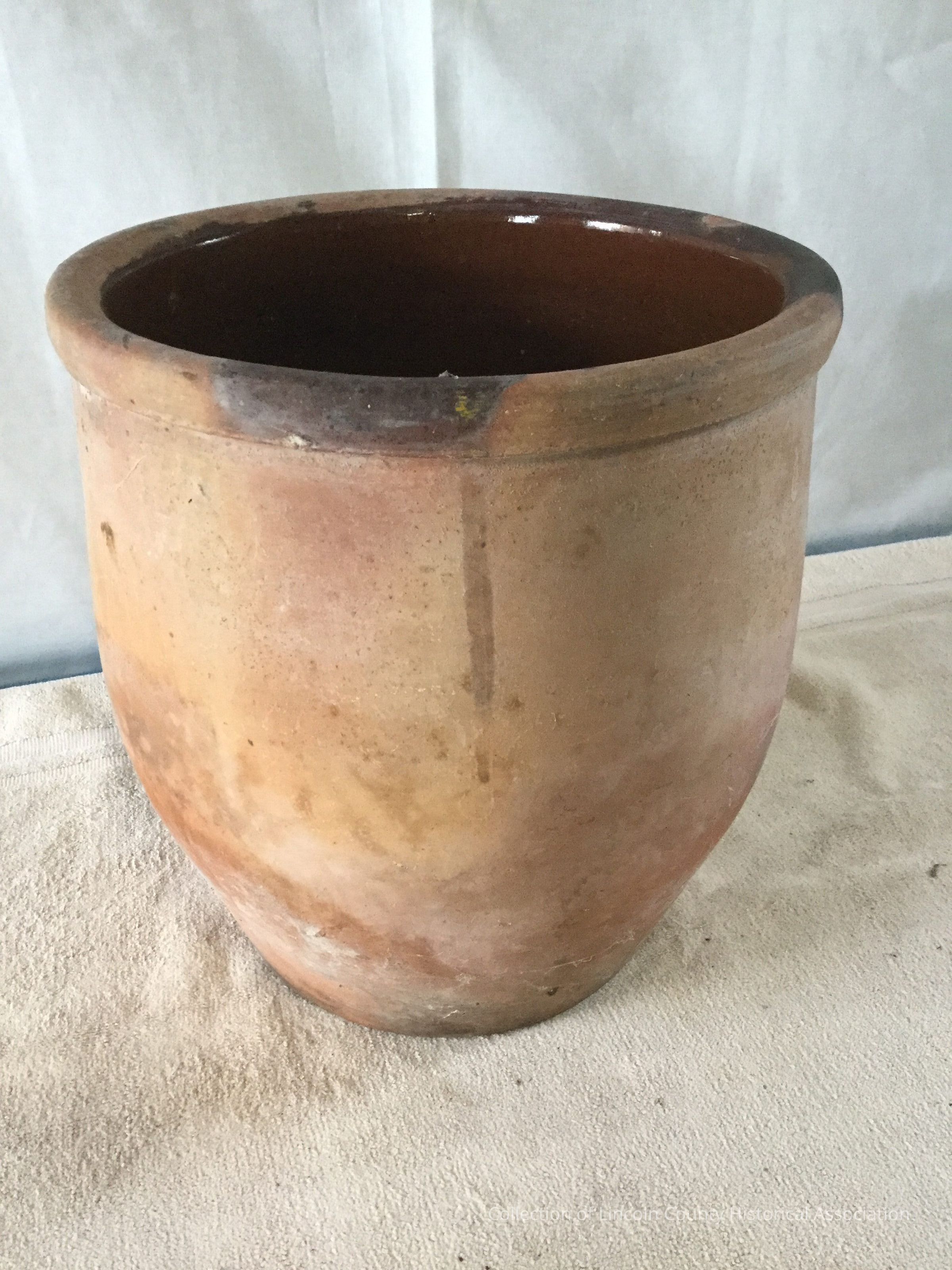 Earthenware, redware crock. Slightly ovoid shapeMade/Created