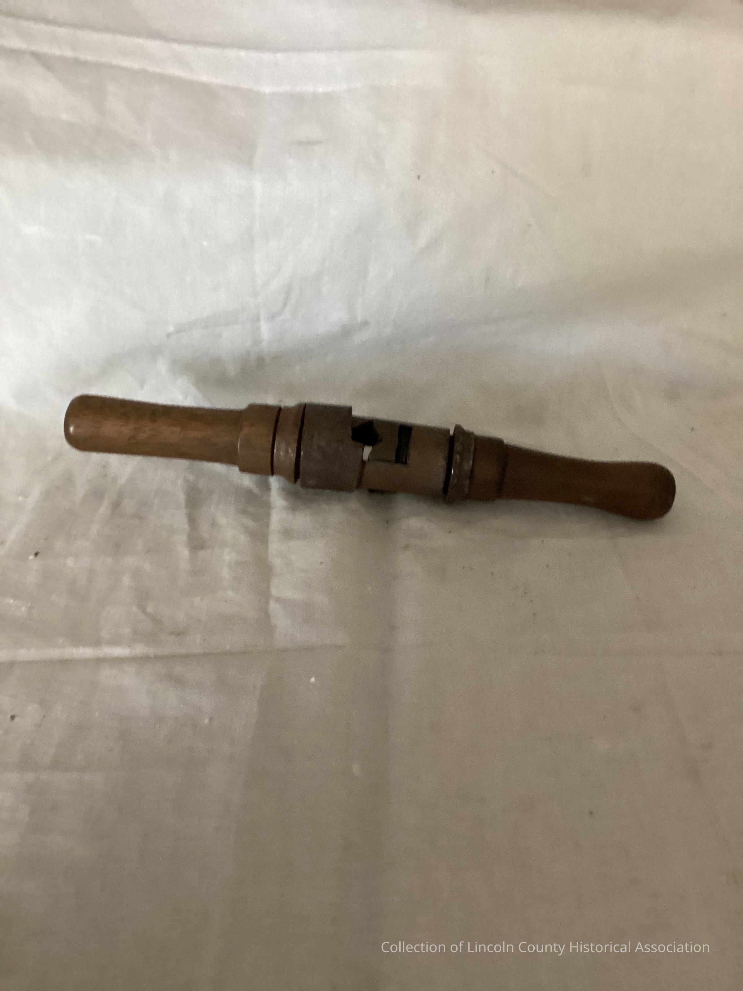 Maple and steel adjustable twist auger handle. Turned maple wood handles with adjustable steel screws to lock onto auger shankInscription/Signature/Marks