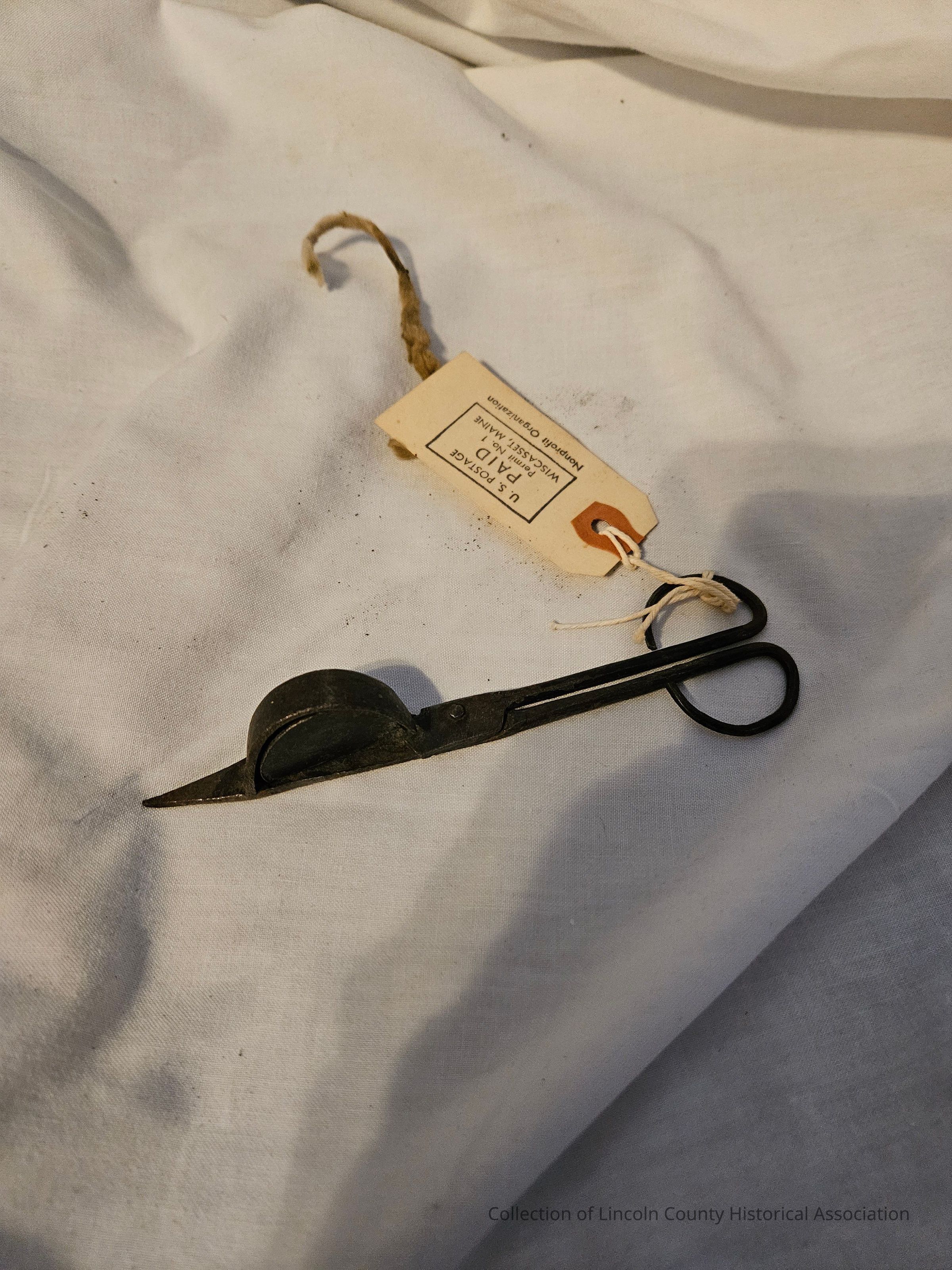 Metal scissor shaped wick trimmer and snuffer with rounded cup near blade end to catch wick.Made/Created