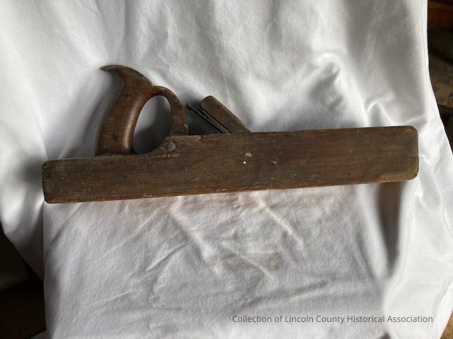 Wood and iron jack plane. Also known as a "razee plane." Rectangular wooden block with a closed handle. The closed handle permitted, for example, a ship's carpenter to support the britch from the operator's wrist while planing downward along the curving side of a wooden boat.Made/Created
