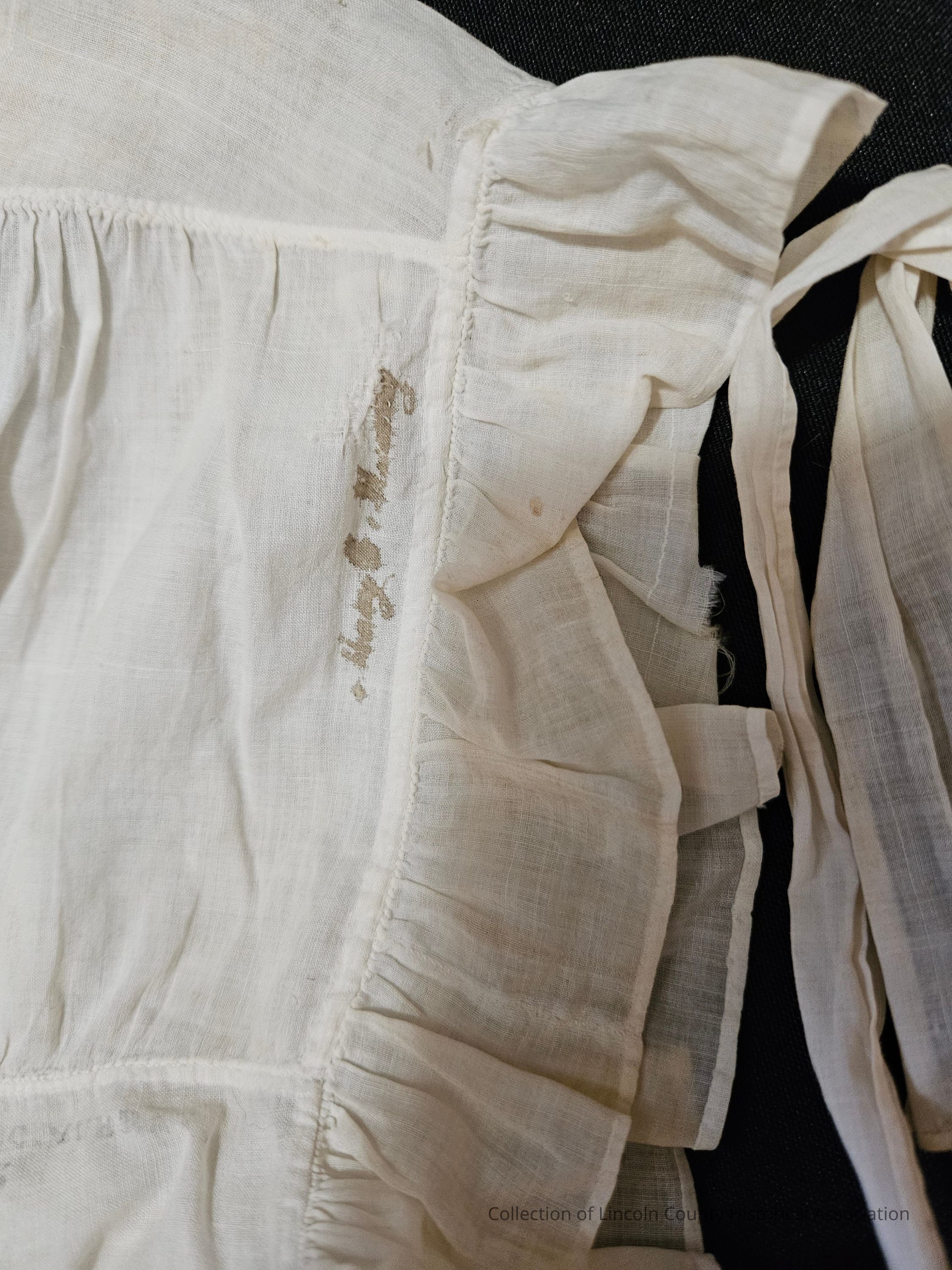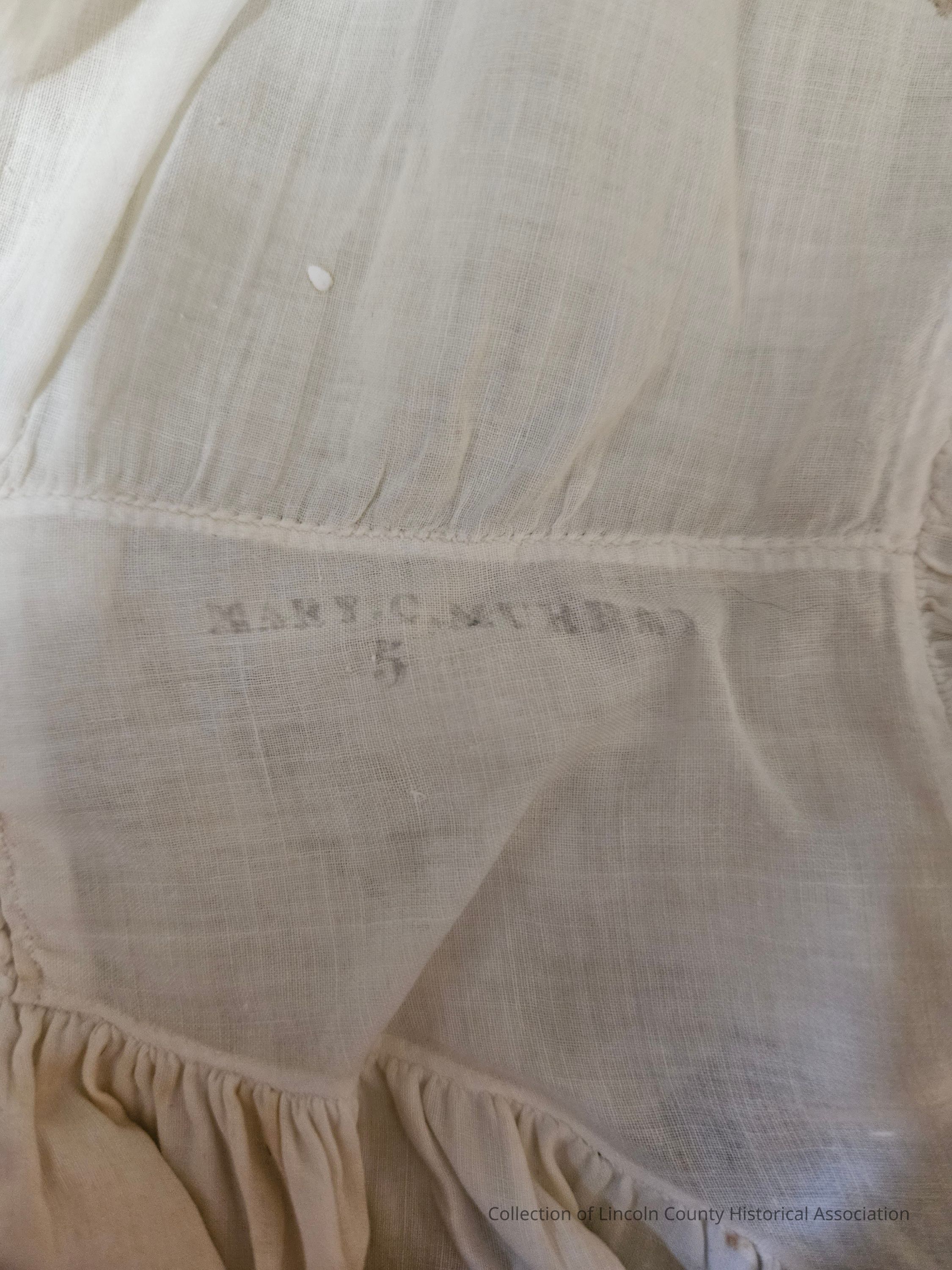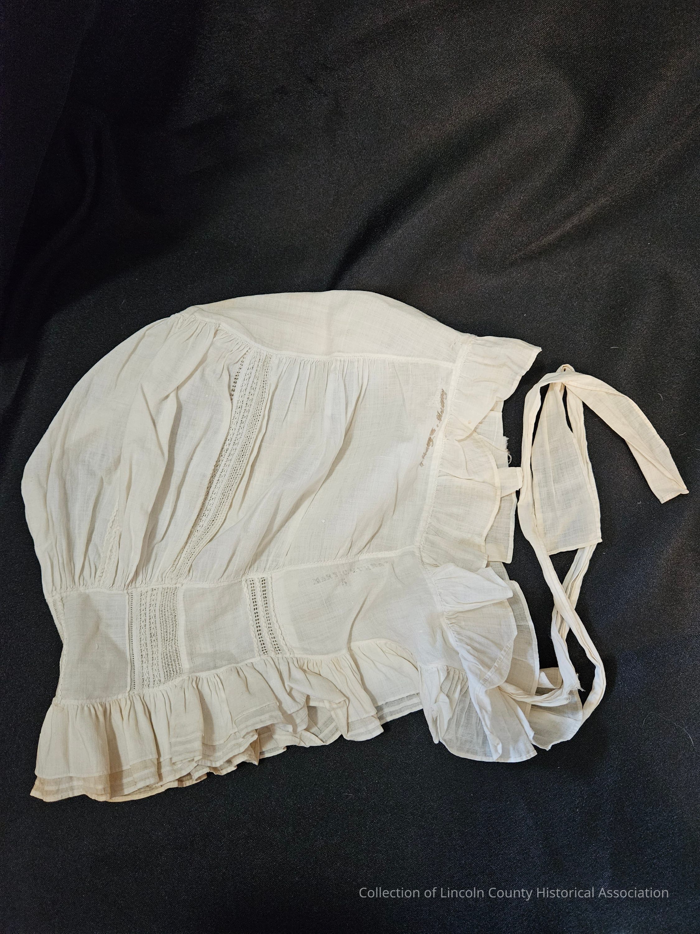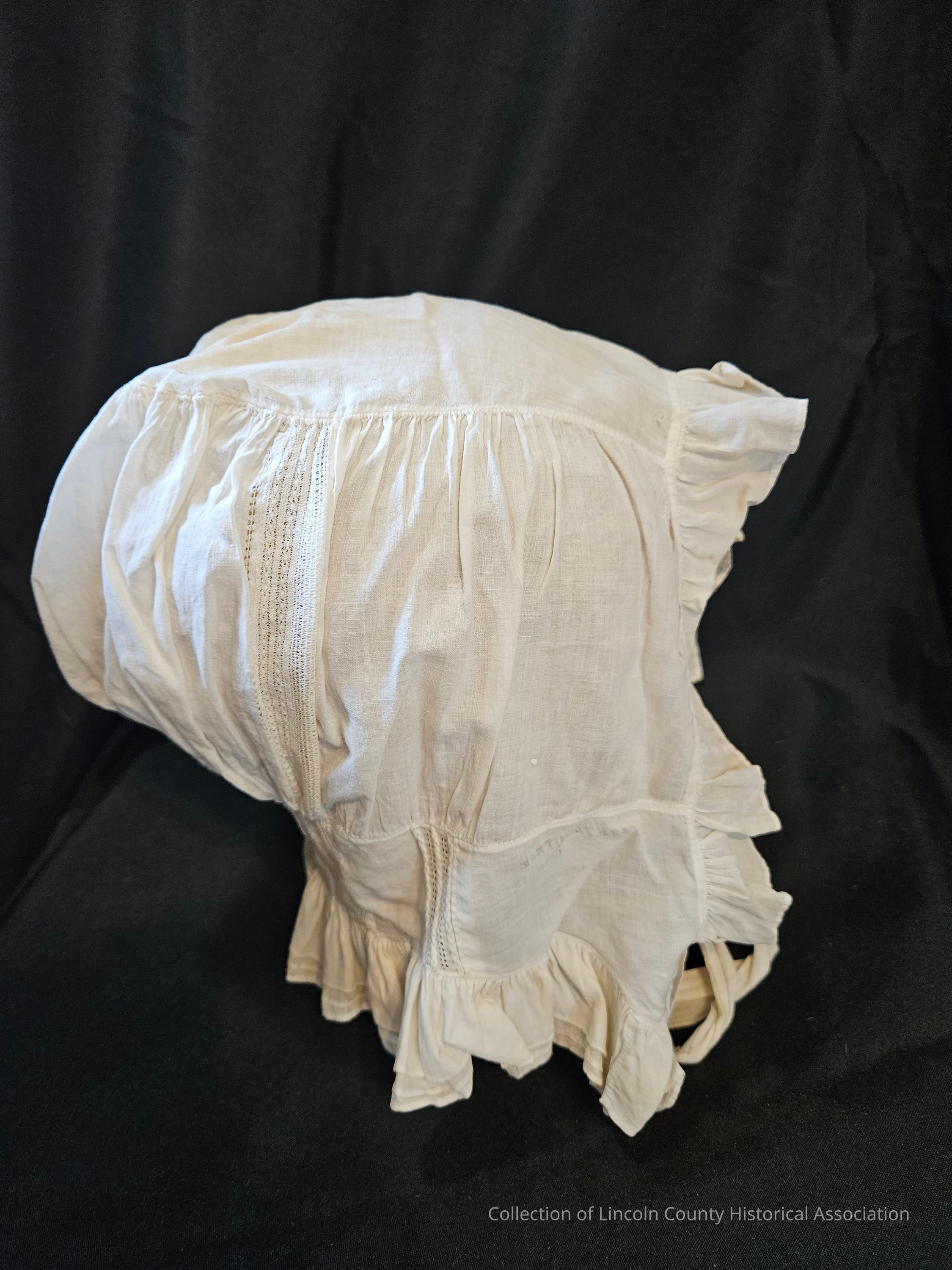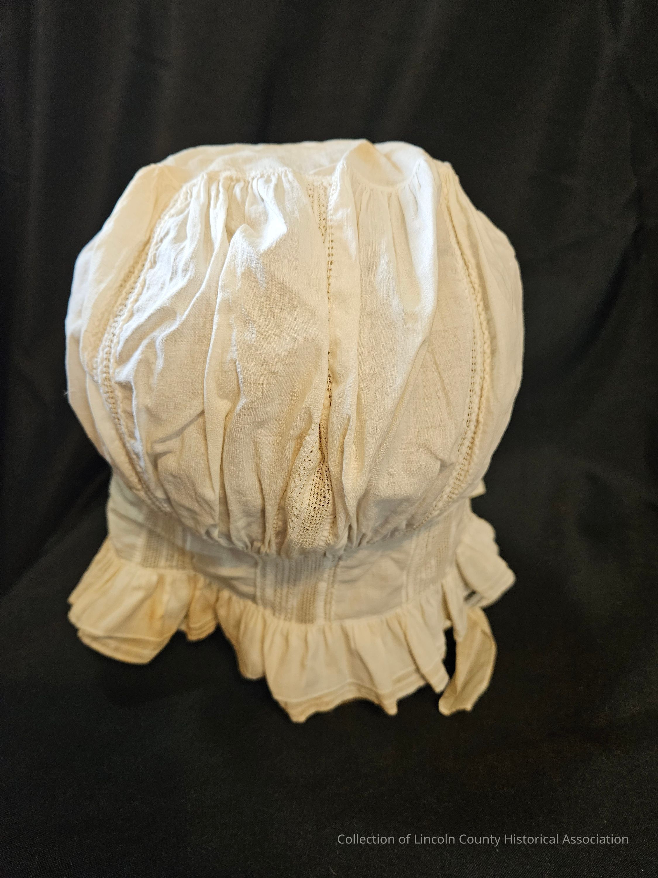 Bottom of cap, just below bottom seam on right side of wearer's head.Transcription