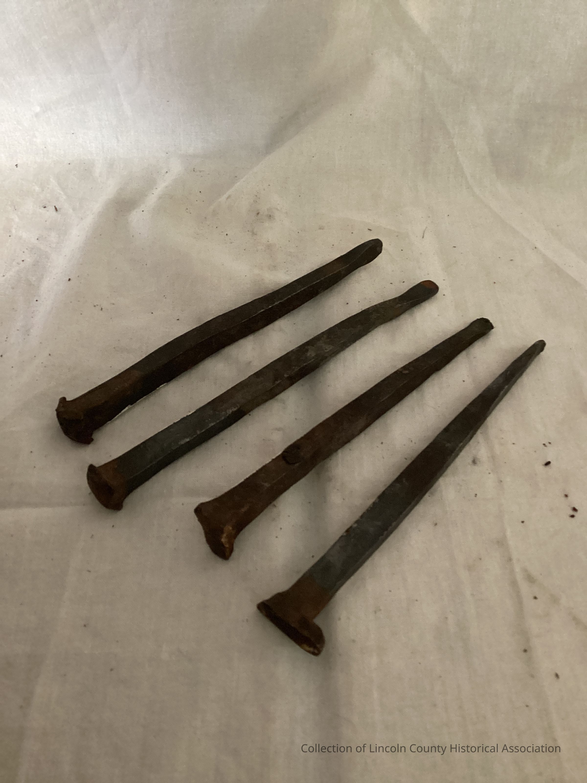 Four wrought iron spikes. All with spade points and rose heads.Made/Created