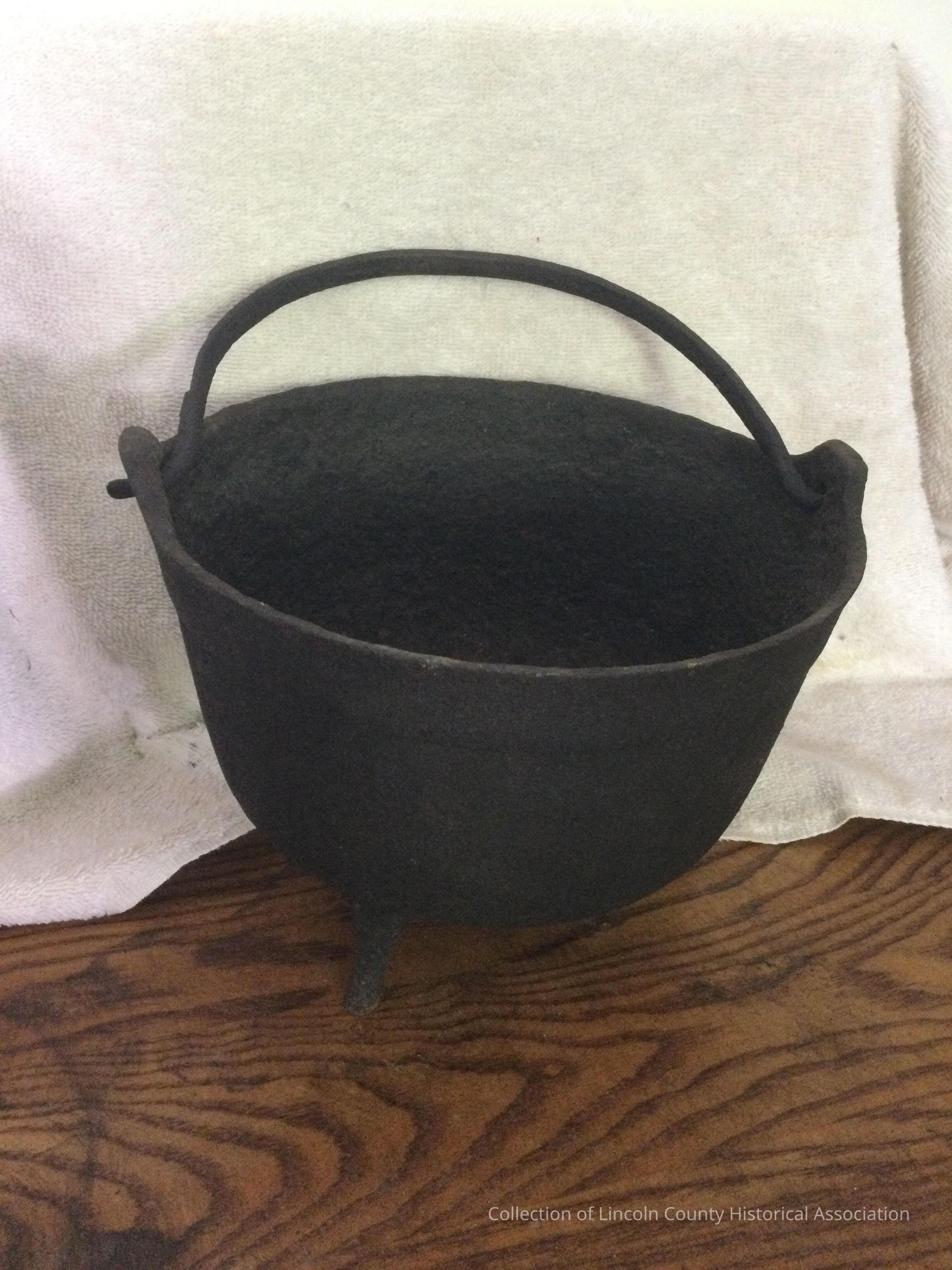 Cast iron cooking pot with a swing handle and with three legsMade/Created