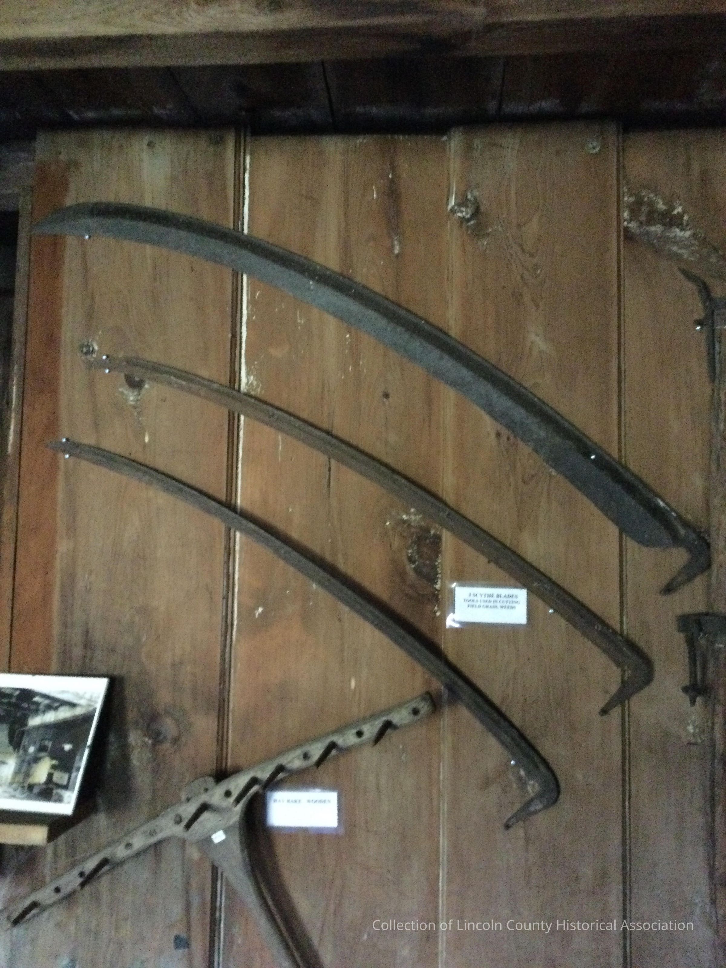 Three steel scythe blades
