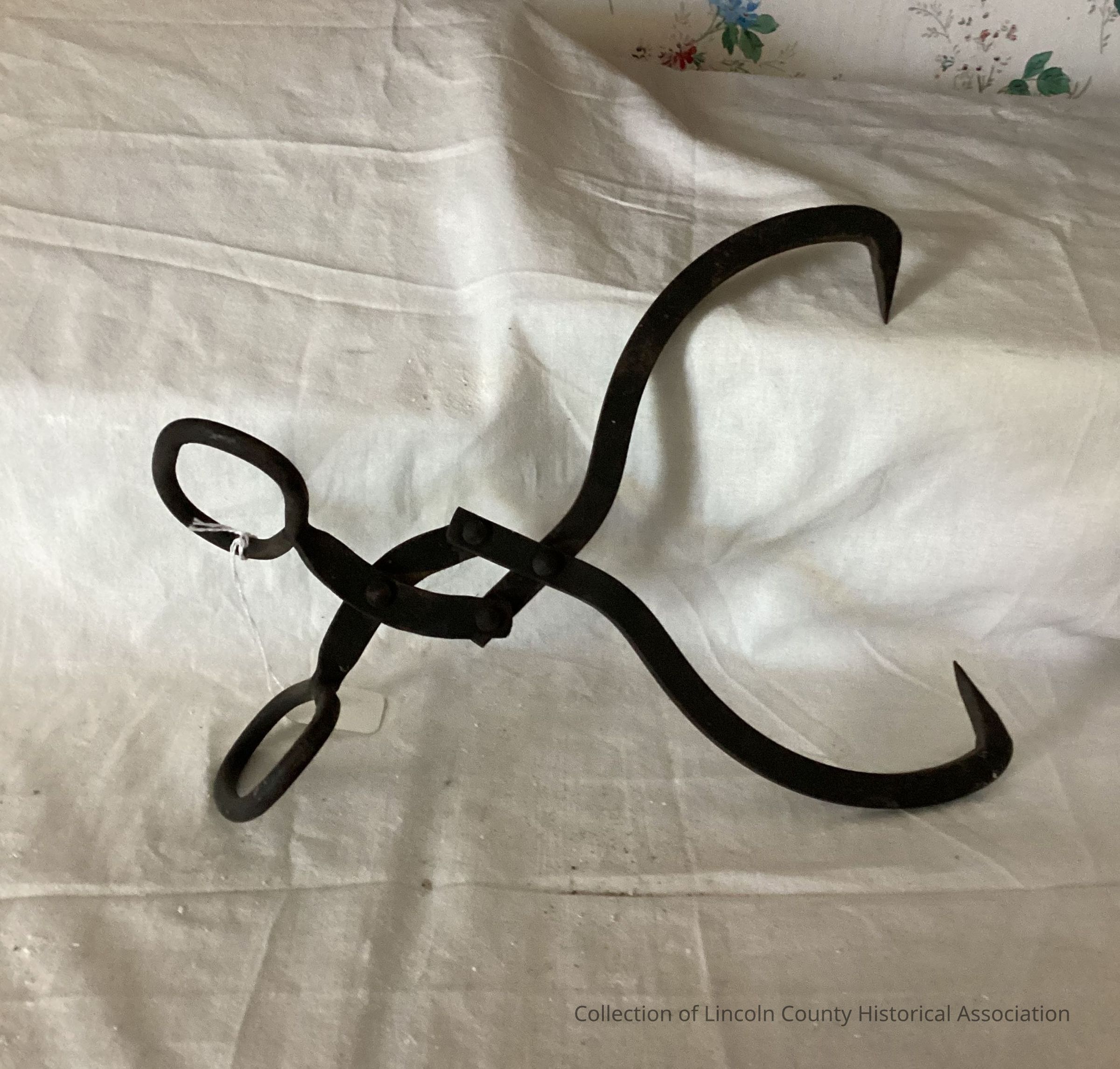 Cast iron ice tongs painted black. Double jointed.Made/Created