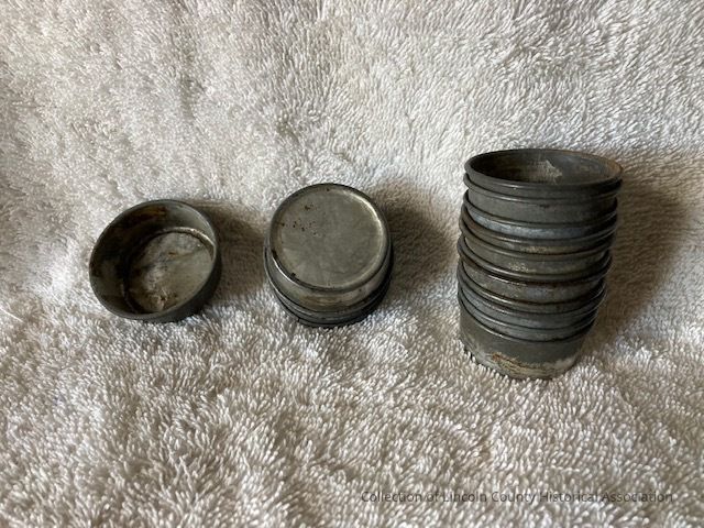 16 small tin cups, each large enough to function as butter or candy moulds. Tinned sheet iron.Made/Created