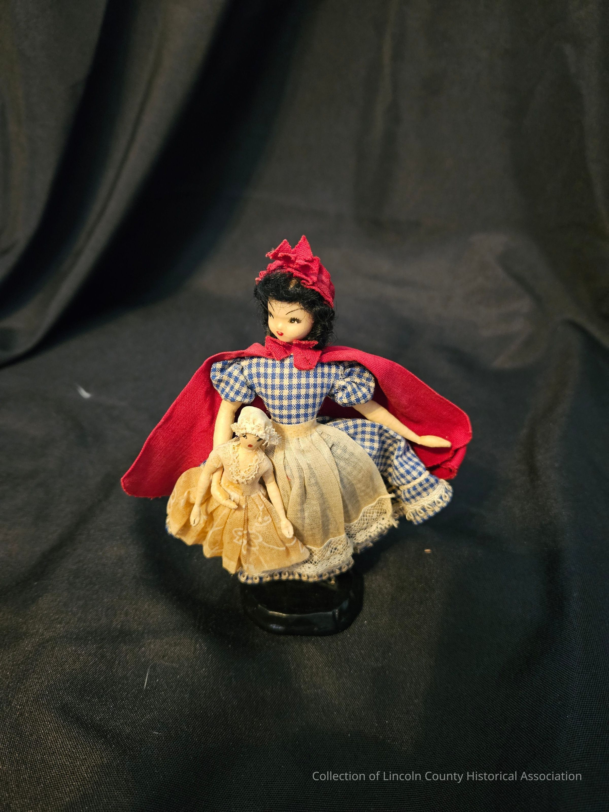Doll is meant to represent the "Sally" character from the "Away Goes Sally" book series by Elizabeth Coatsworth of Nobleboro, ME. The series was originally published in 1934 and follows and 18th century family moving from Massachusetts to Maine.