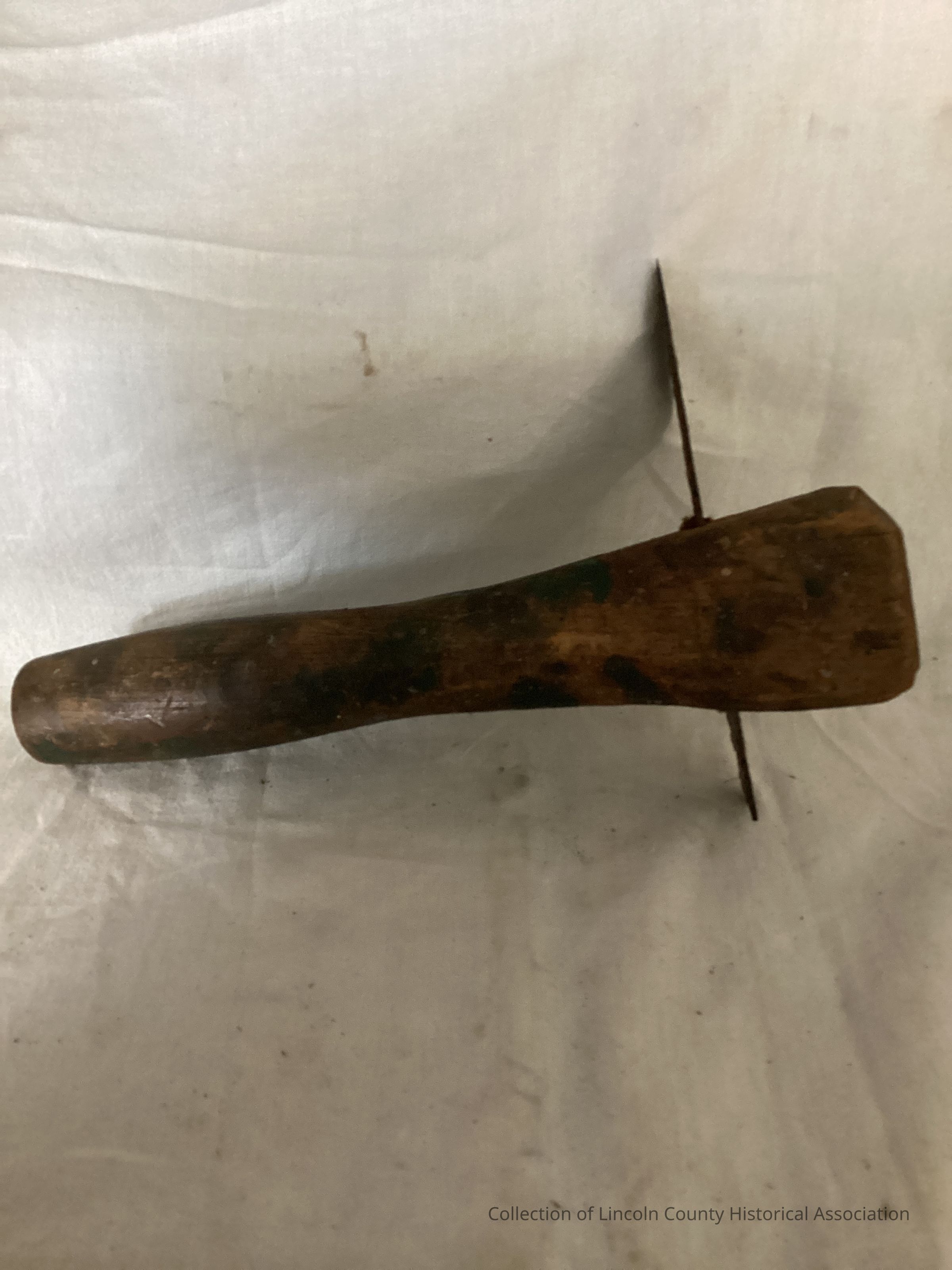 Paint scraper. Home made with a broken knife blade inserted into the top of a wooden handle