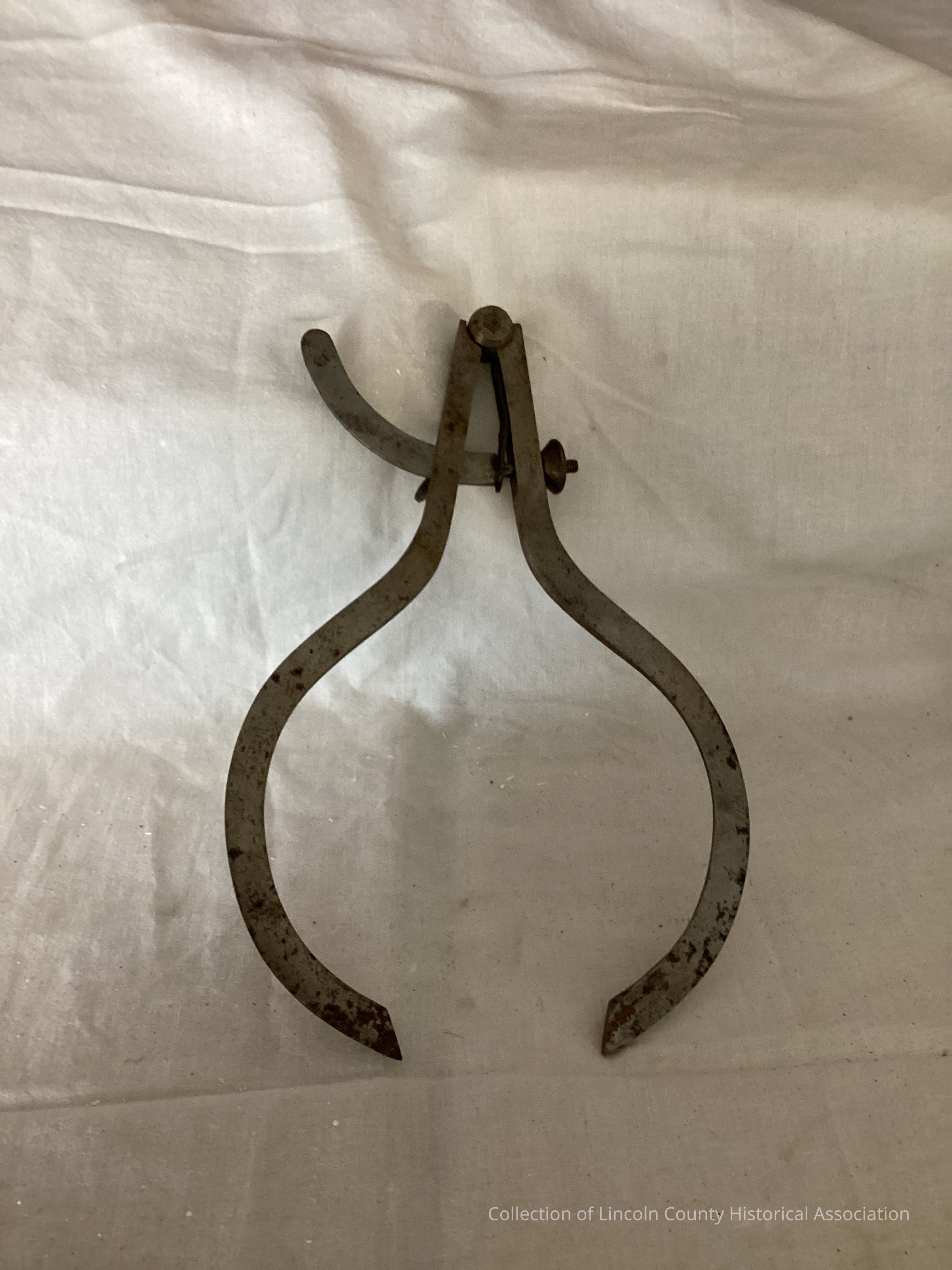 Pair of outside calipers. In two parts with one section which is movable along a curbed bridge.
