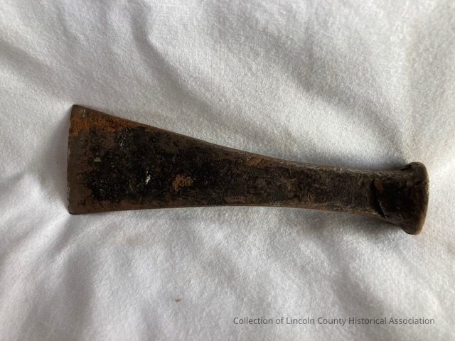 Hand forged steel caulking iron with a v-shaped steel blade with a flat round top and a with a slight curve.