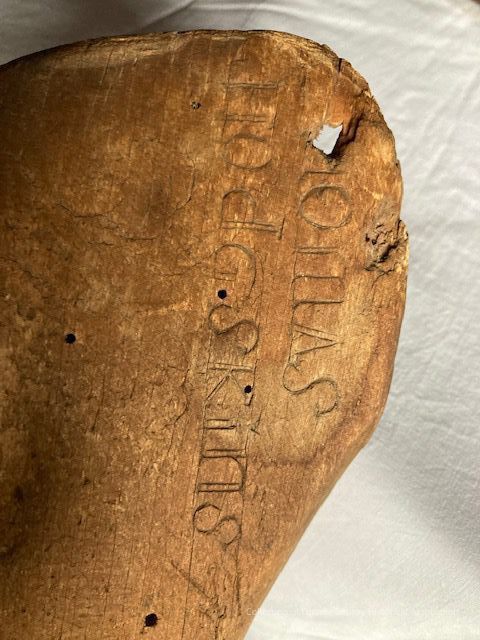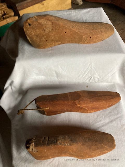 Trio of wooden shoe maker's lasts. Roughly hand-carved and neither is designed specifically for a right or left foot. B is carved in maple whereas C is carved in fir.Made/Created