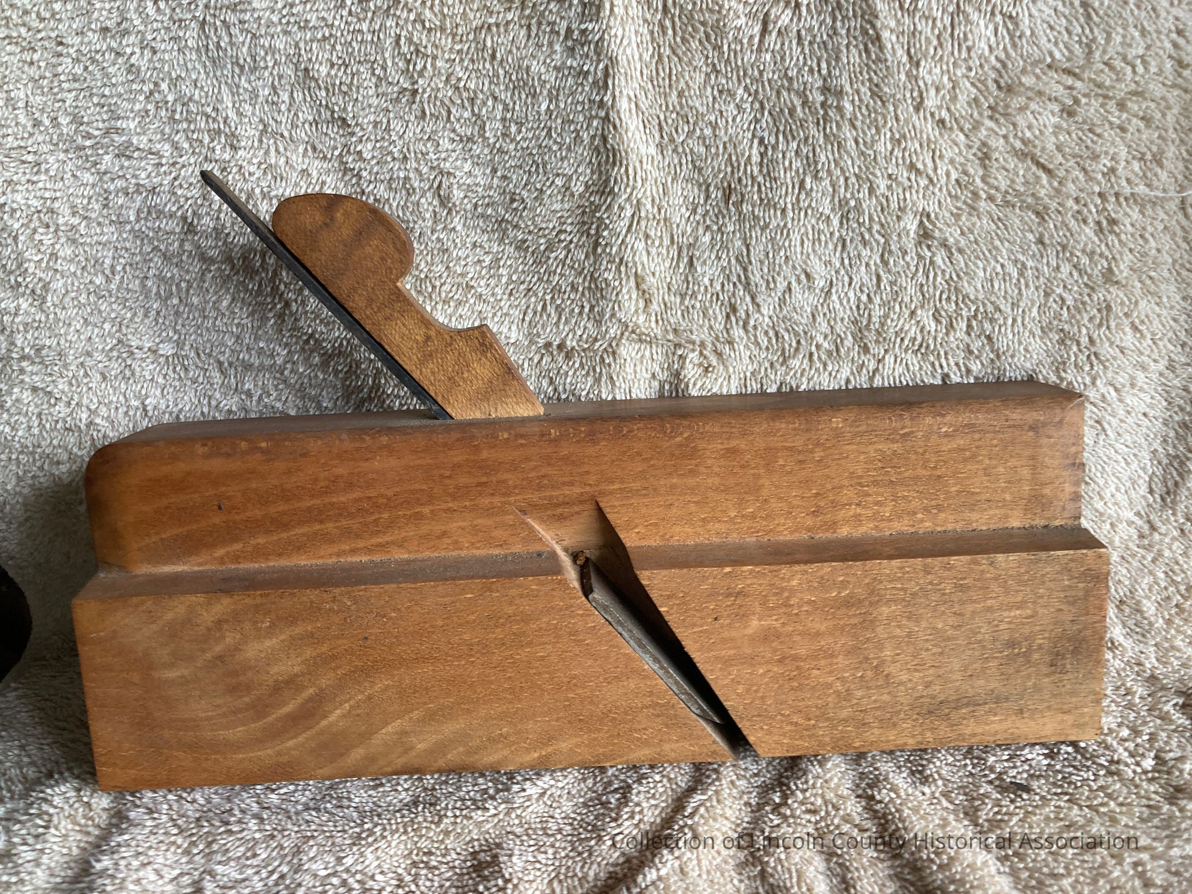 Beech wood hollow concave moulding plane. Its iron blade ends with a steel cutting edge. Retains its original wooden fence.Dimensions
