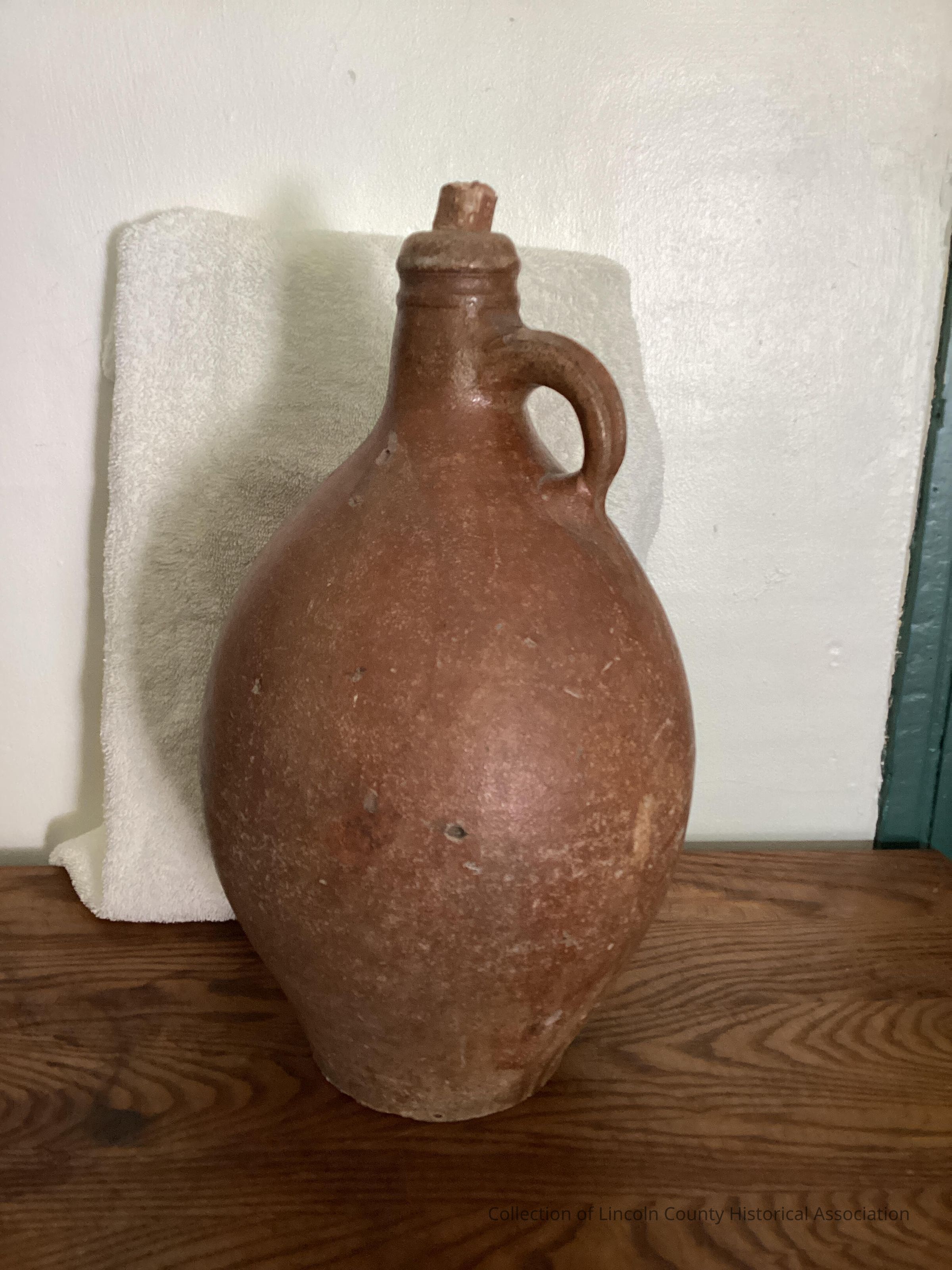 Ovoid stoneware storage jug with a single looped handle. Interior is glazed but exterior is not.Made/Created