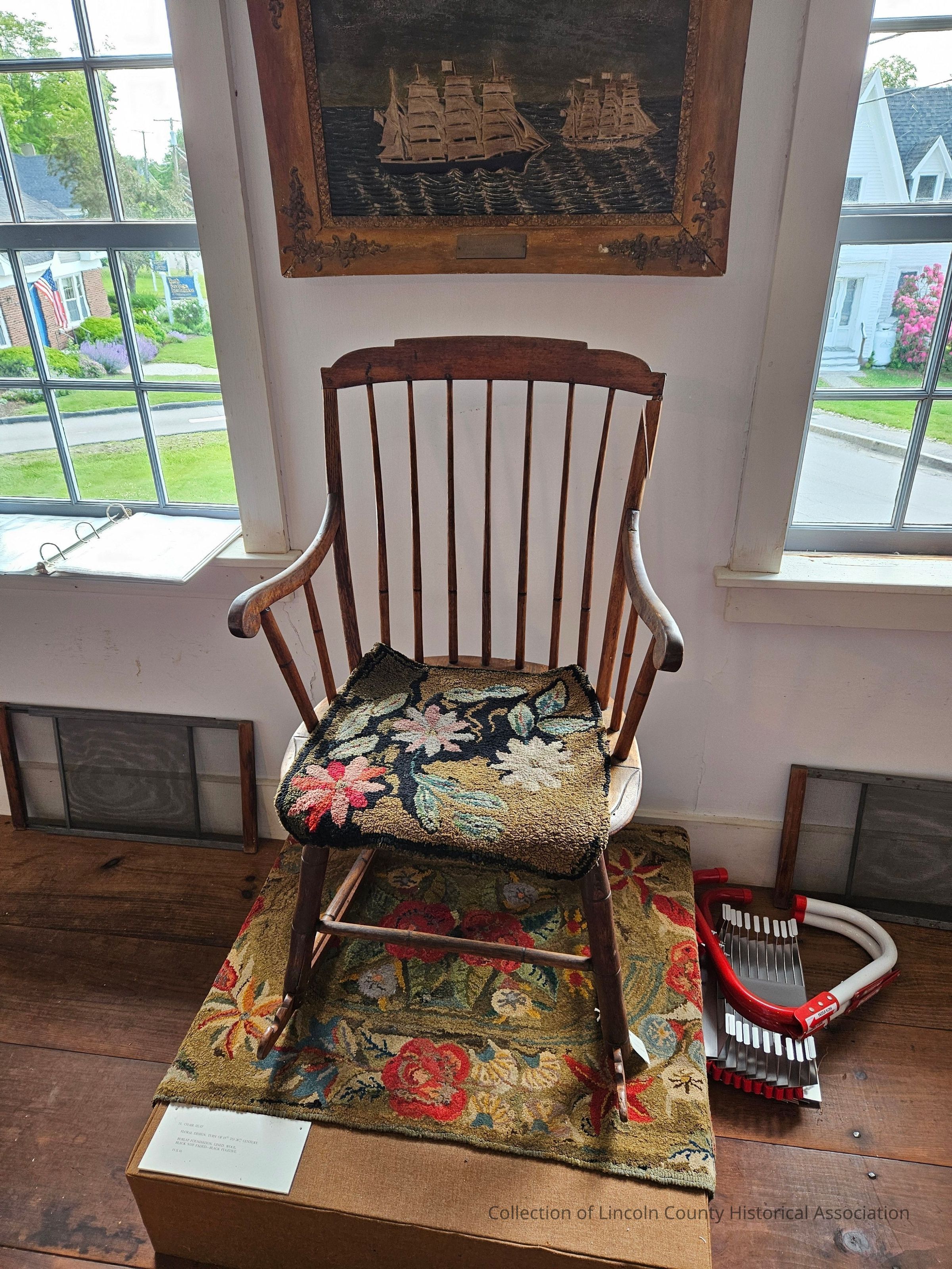 Windsor rocker. Bamboo style back. Badly broken on one side. 7 Tapered spindles. Made of pine, hickory, ash, and maple. Rockers probably added later.Made/Created