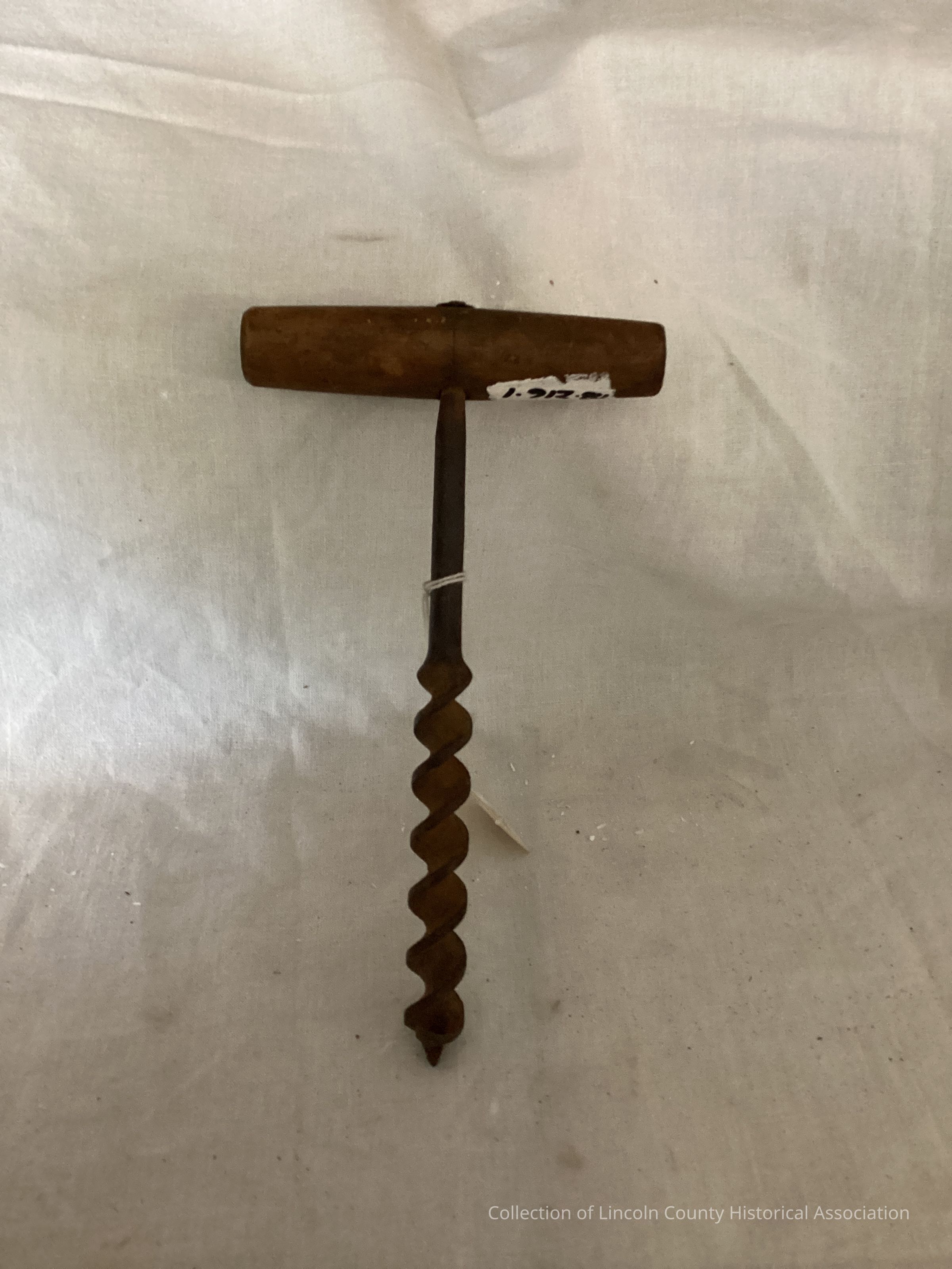 Wood and iron hand auger (gimlet). Wooden hardwood cross handle