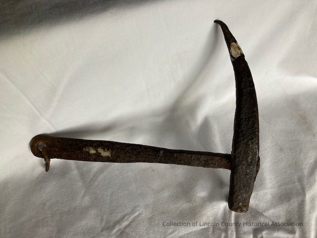Hand forged wrought iron snow hammer. Is of a hammer and pick design. Implement would be hung from a carriage or cart drawn by a horse. Referred to as a "Yankee Snow Knocker."
