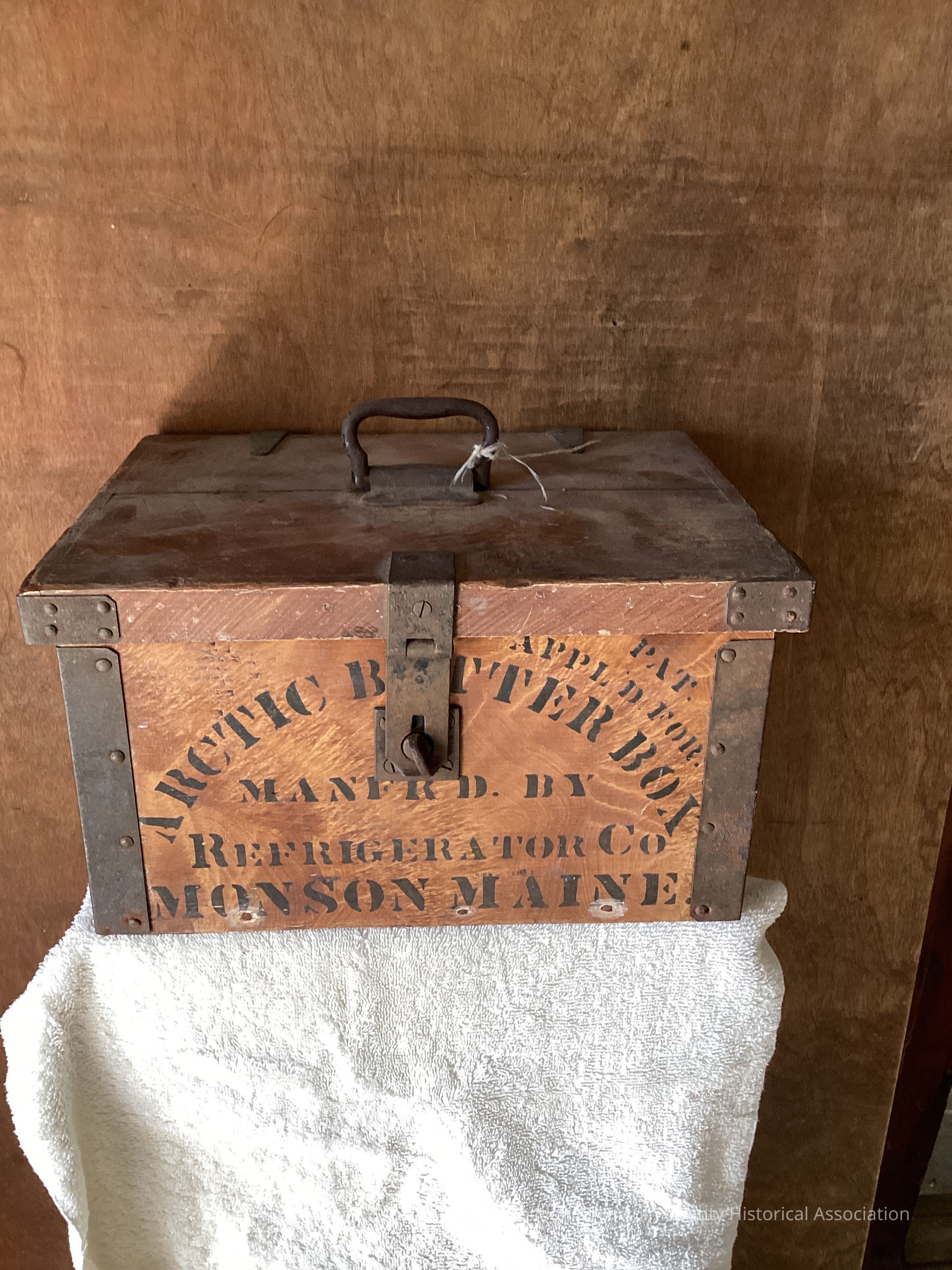 "Arctic Butter Box", "Monford by", "Refrigerator Co.," " Monson Maine", "Pat applied for"
