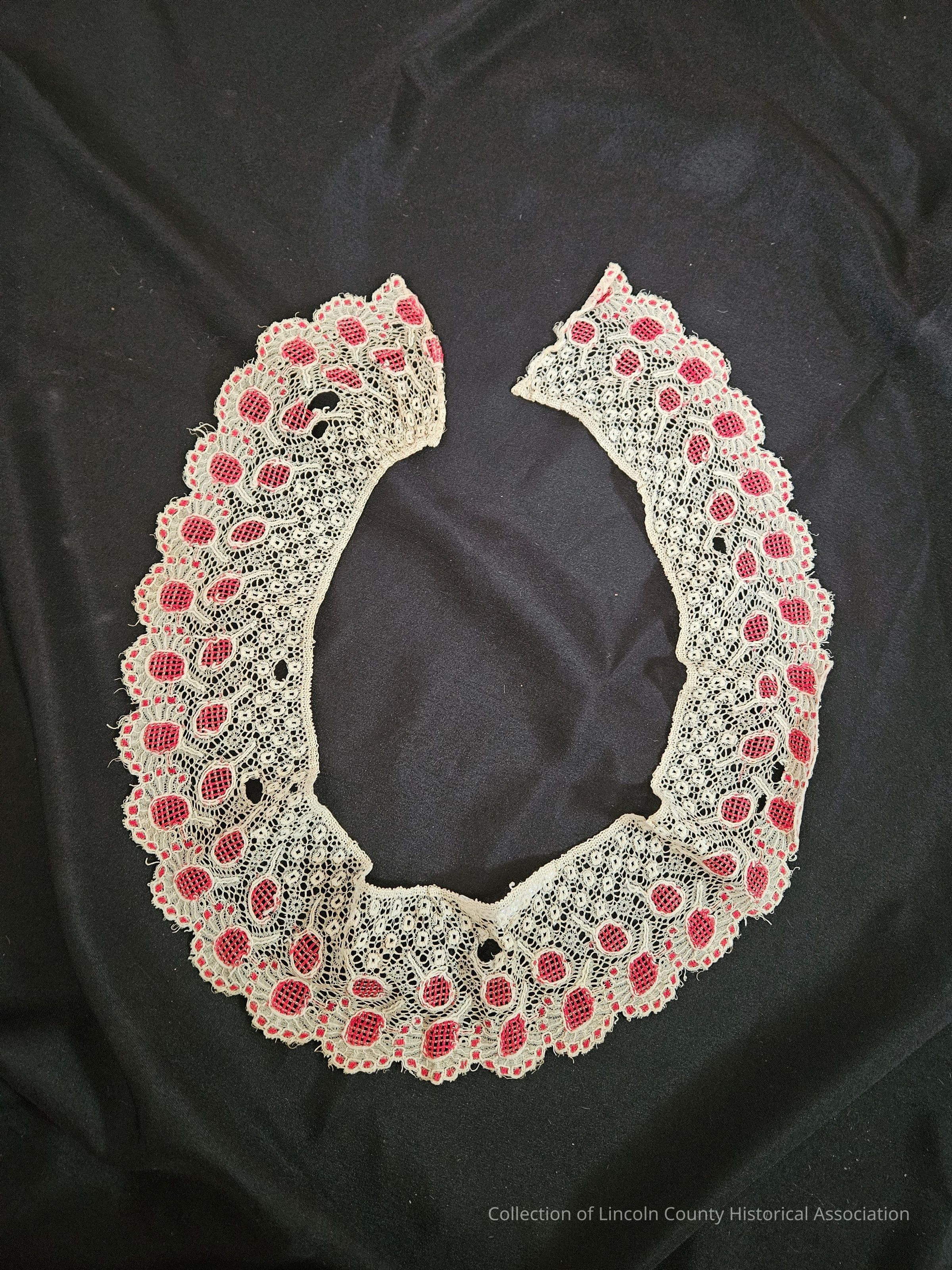 White lace collar with strawberry pattern. Scalloped edges.Clothing/Dress/Costume Details