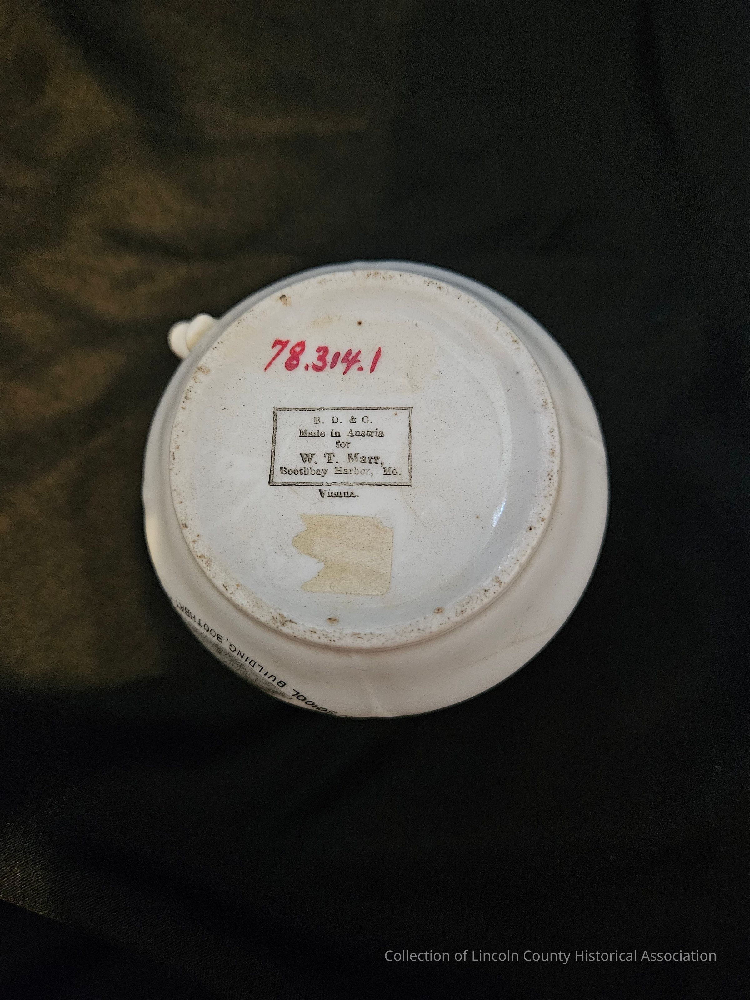 Unknown exactly who made this mug, but it was made in Austria for W.T. Marr of Boothbay Harbor, according to mark on the bottom.