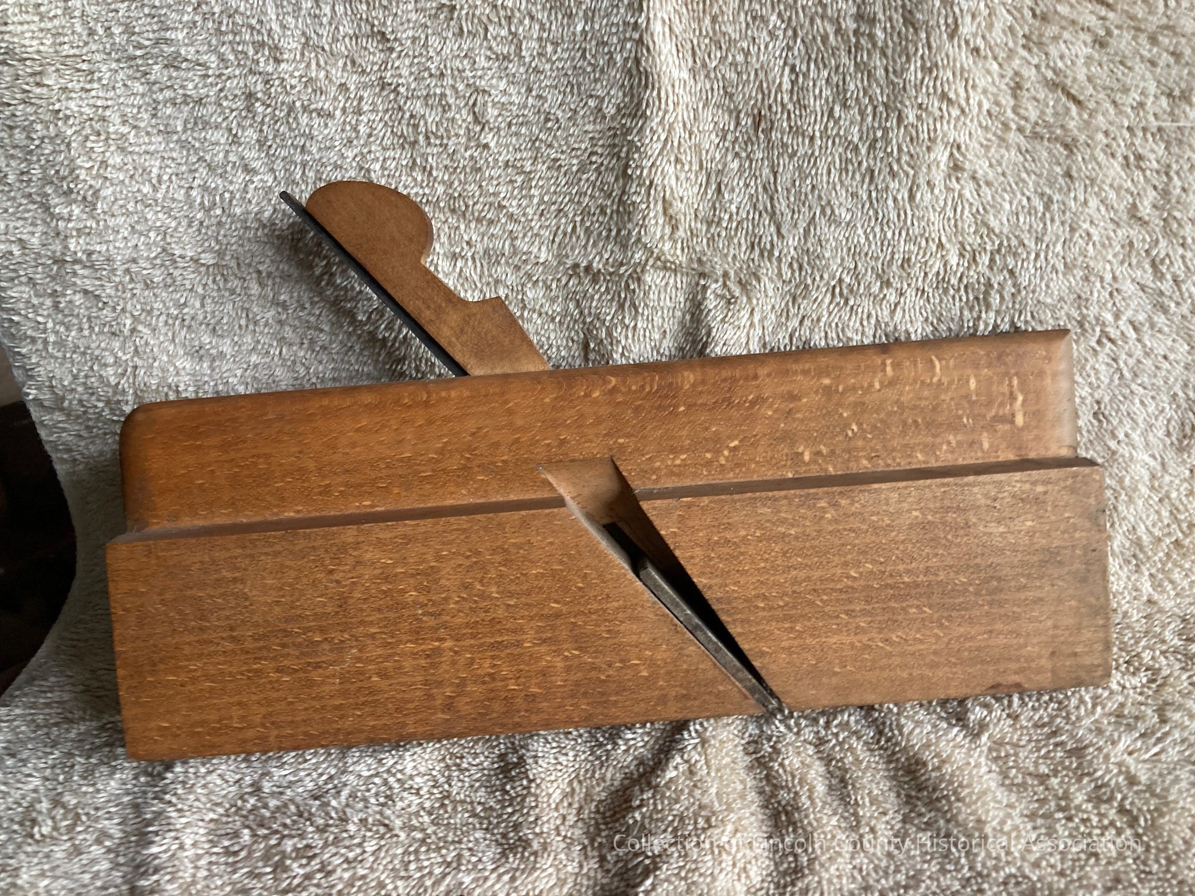 Beech wood hollow convex moulding plane. Has one fork longer than the other. Its iron blade ends with a steel cutting edge.Made/Created