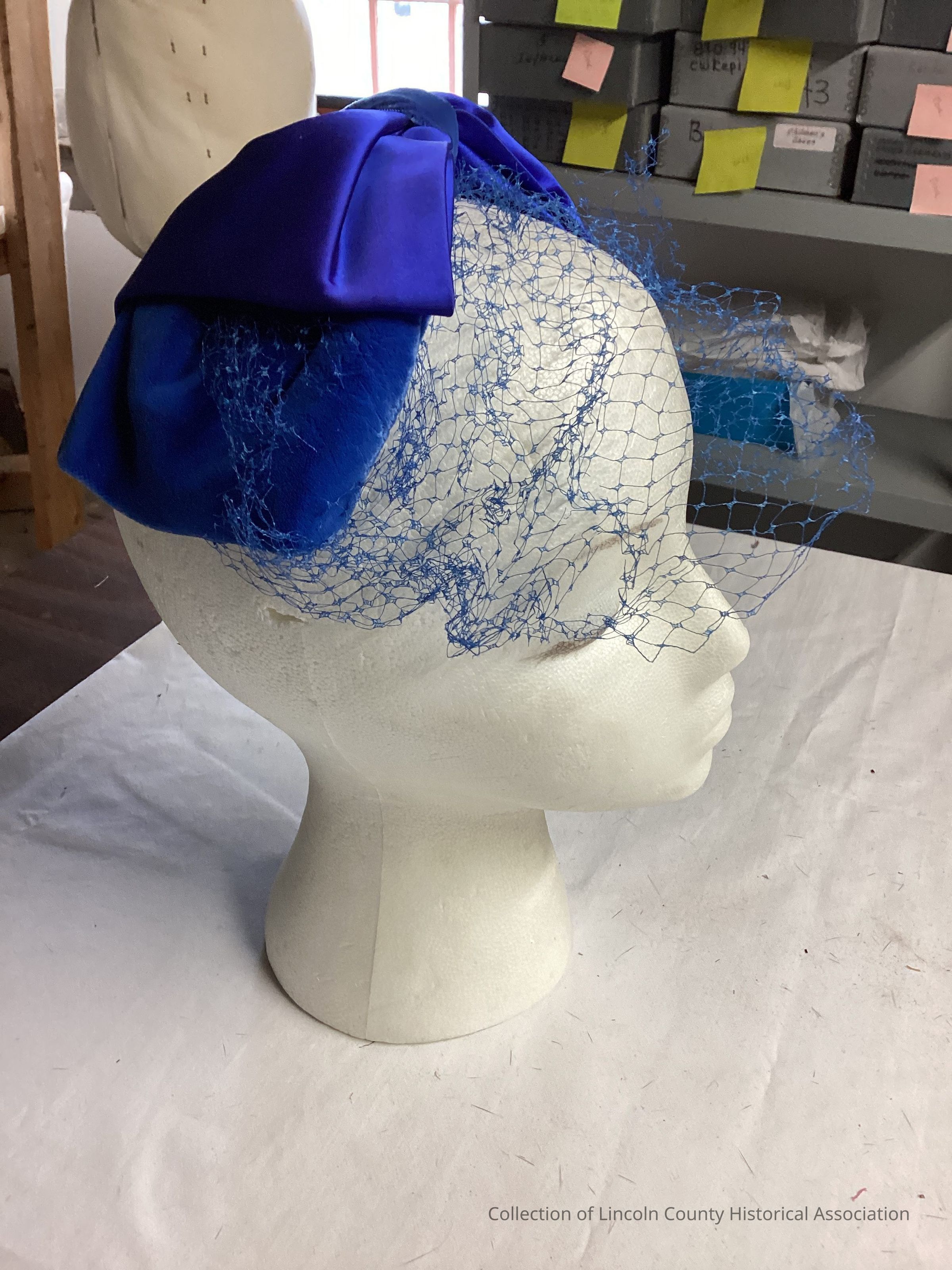 Blue women's hat. Blue mesh with blue silk ribbon on top.Clothing/Dress/Costume Details