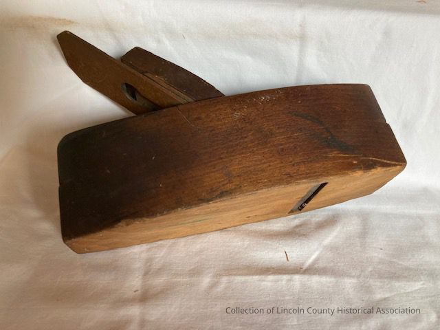 Wooden plane with lignum vitae knob to allow adjustment to blade with a chip curler