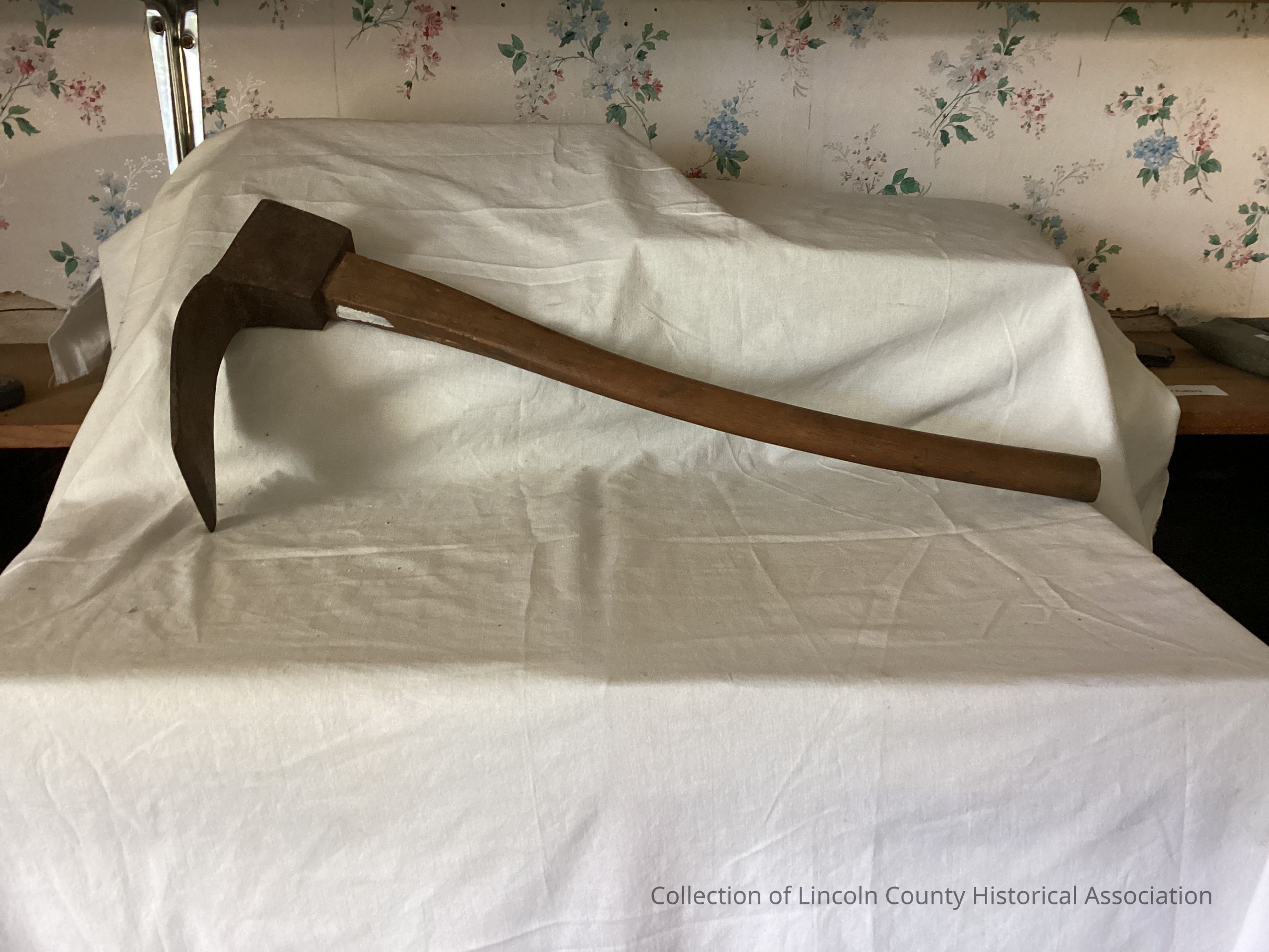 Carpenter's adze. Metal blade with a wooden handle.Made/Created