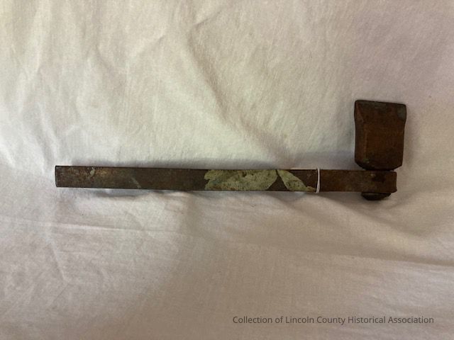 Soldering iron. Flat bar wrapped around a long copper head shaped like an ox head.
