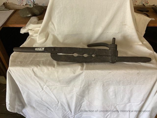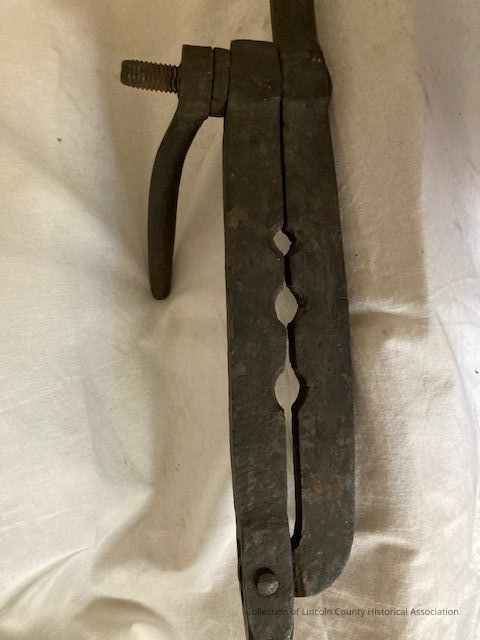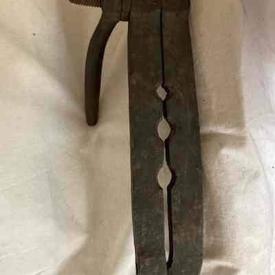 Die Stock. Hand-forged wrought steel. Screw Plate made up of three parts screwed together with strong nuts and bolts. Two large flattened blades connected by a circular bar.Made/Created