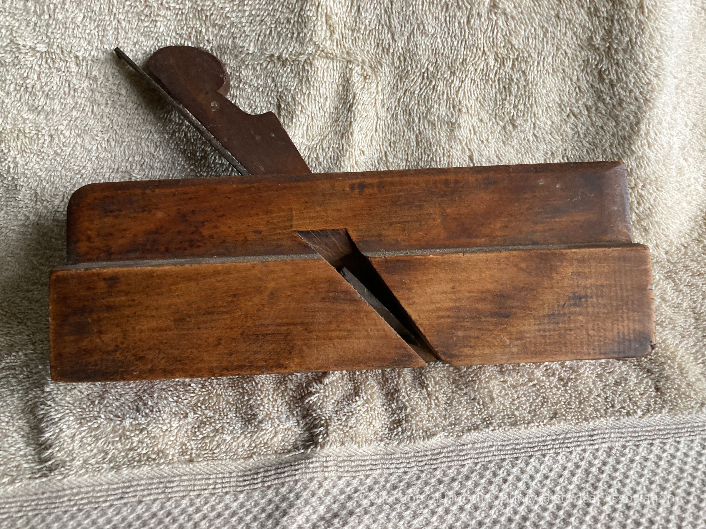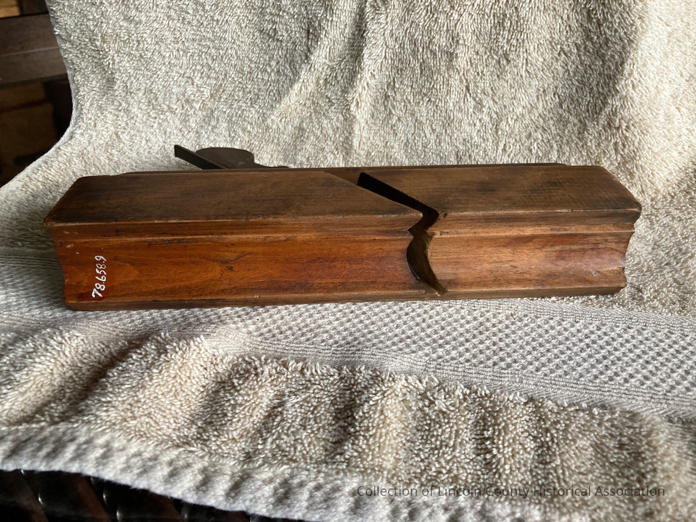 Beech wood and iron moulding plane. Cutting edge of blade designed to create an ovolo profile. Its iron blade ends with a steel cutting edge.Made/Created