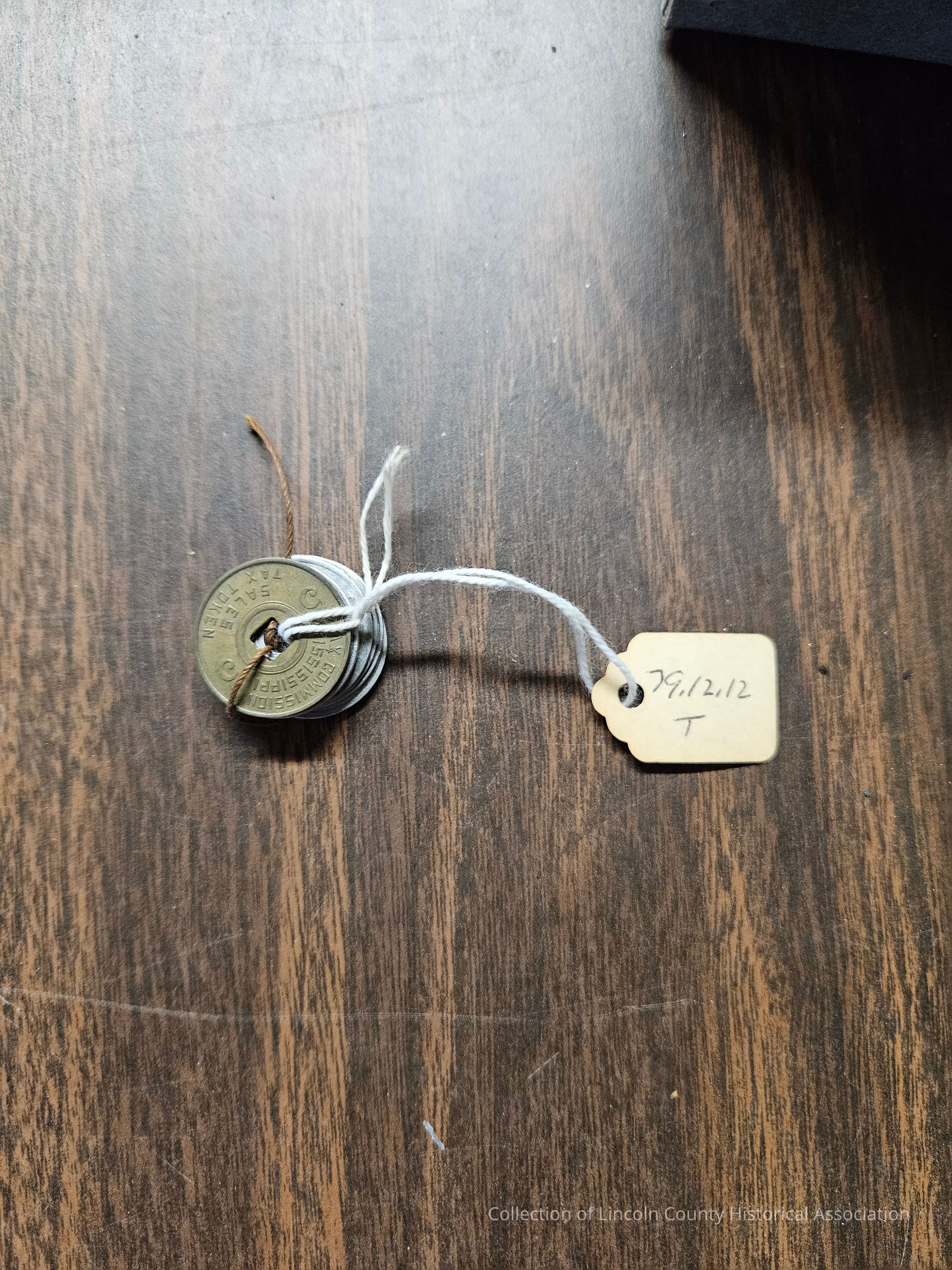 Group of seven sales tax tokens from World War II. Gold and Silver with square holes in the center. These tokens belonged to Daniel S. Pratt, a Staff Sergeant in the 9th Infantry Division during World War II.Mintage