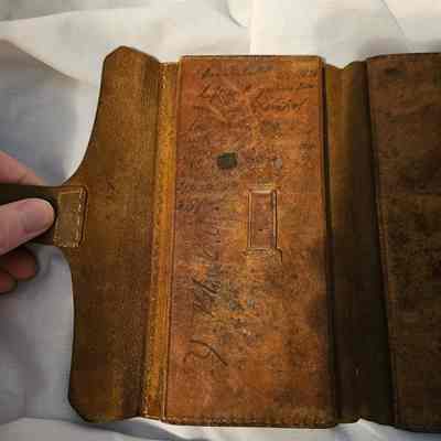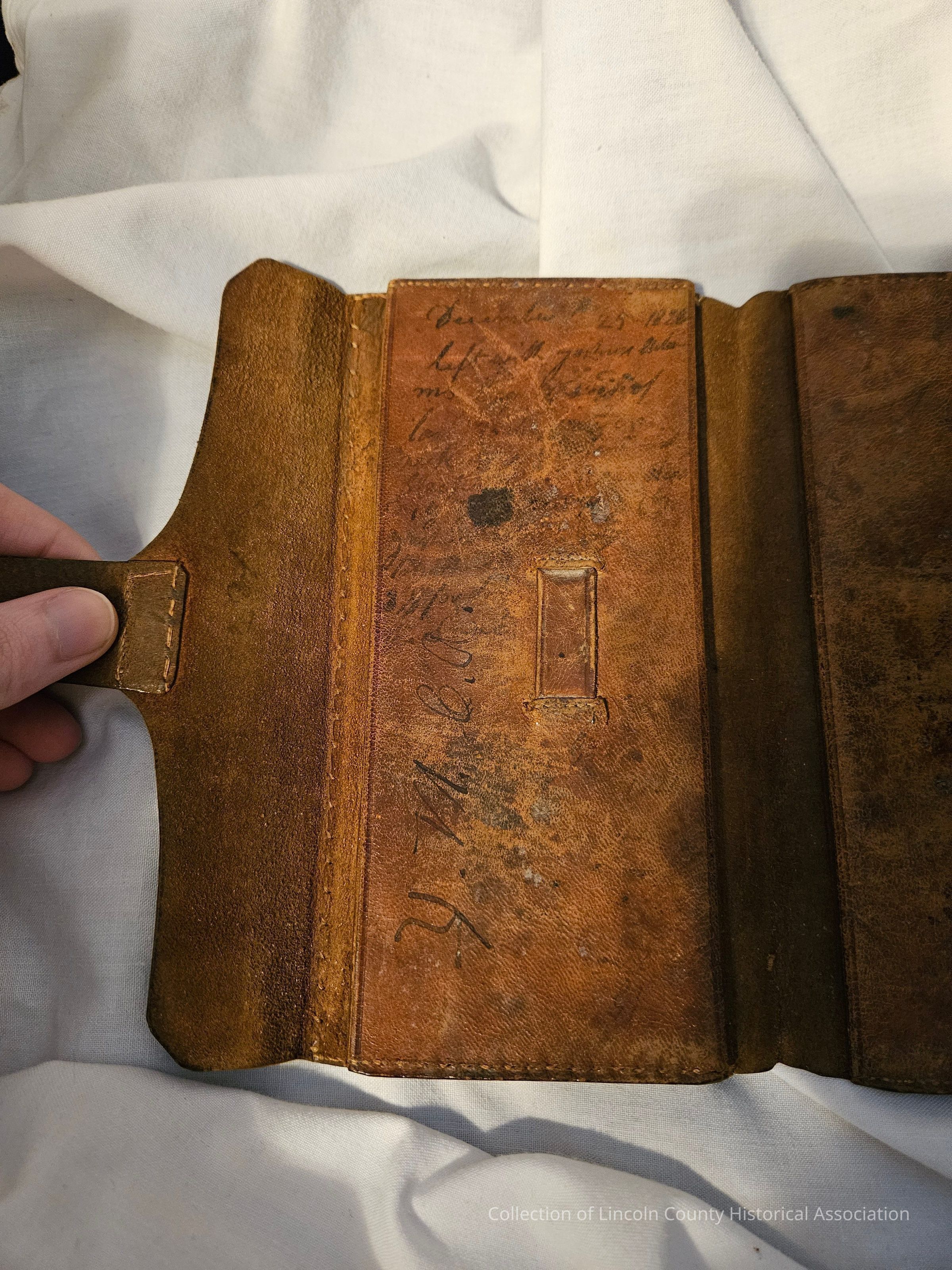 There are some pencil marks on the inside, they are mostly illegible, looks like the wallet was a Christmas gift.