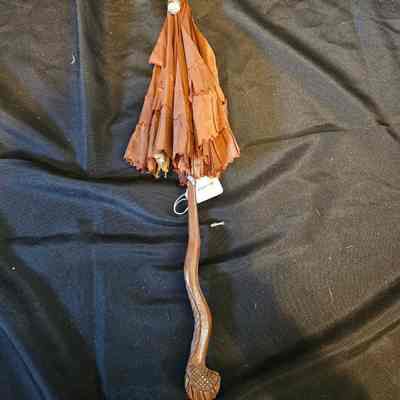 Brown Parasol with Carved HandleDescription