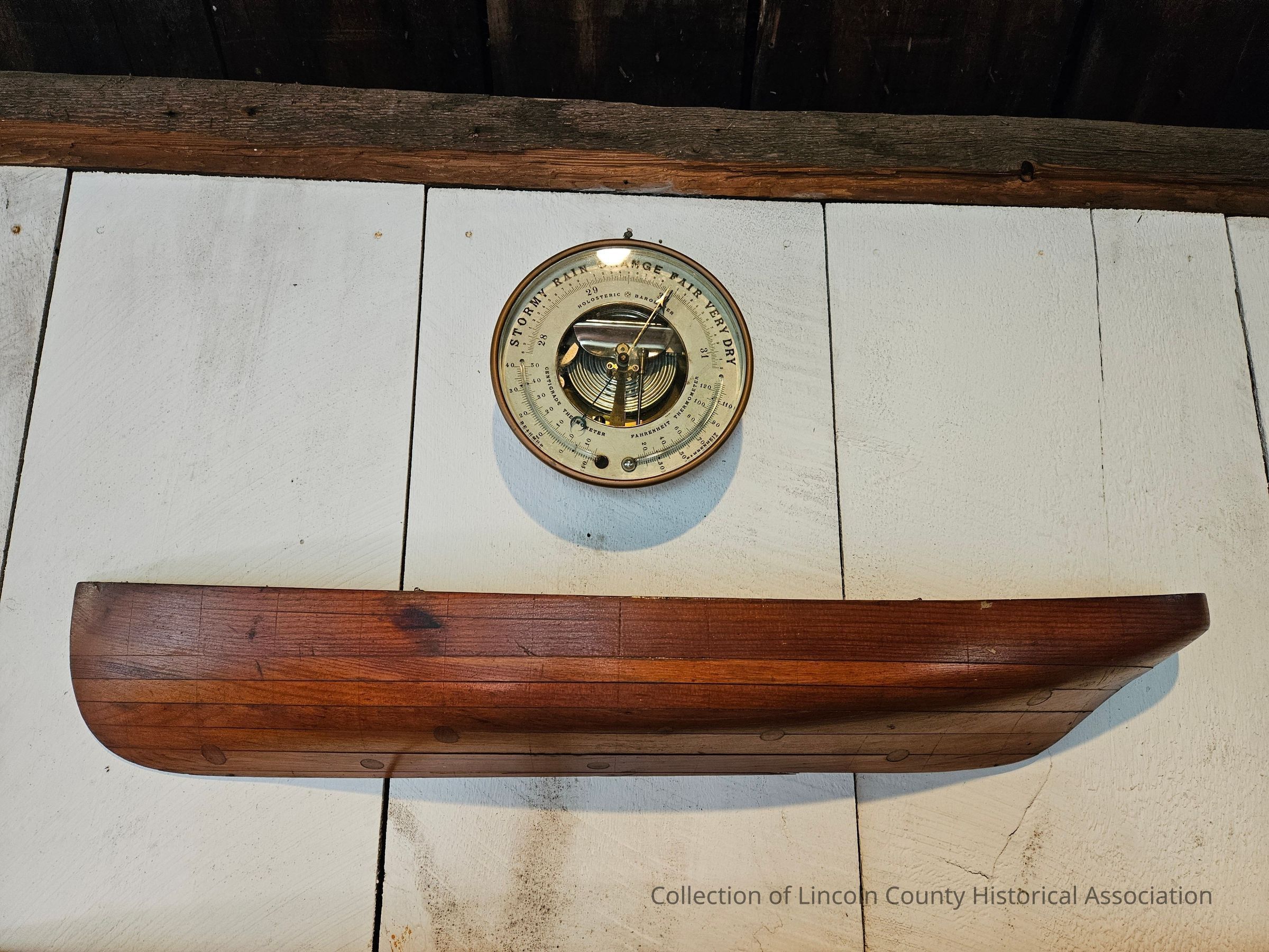 Pine half model of a wooden ship's hull. Varnished and mounted on a backing board.Made/Created
