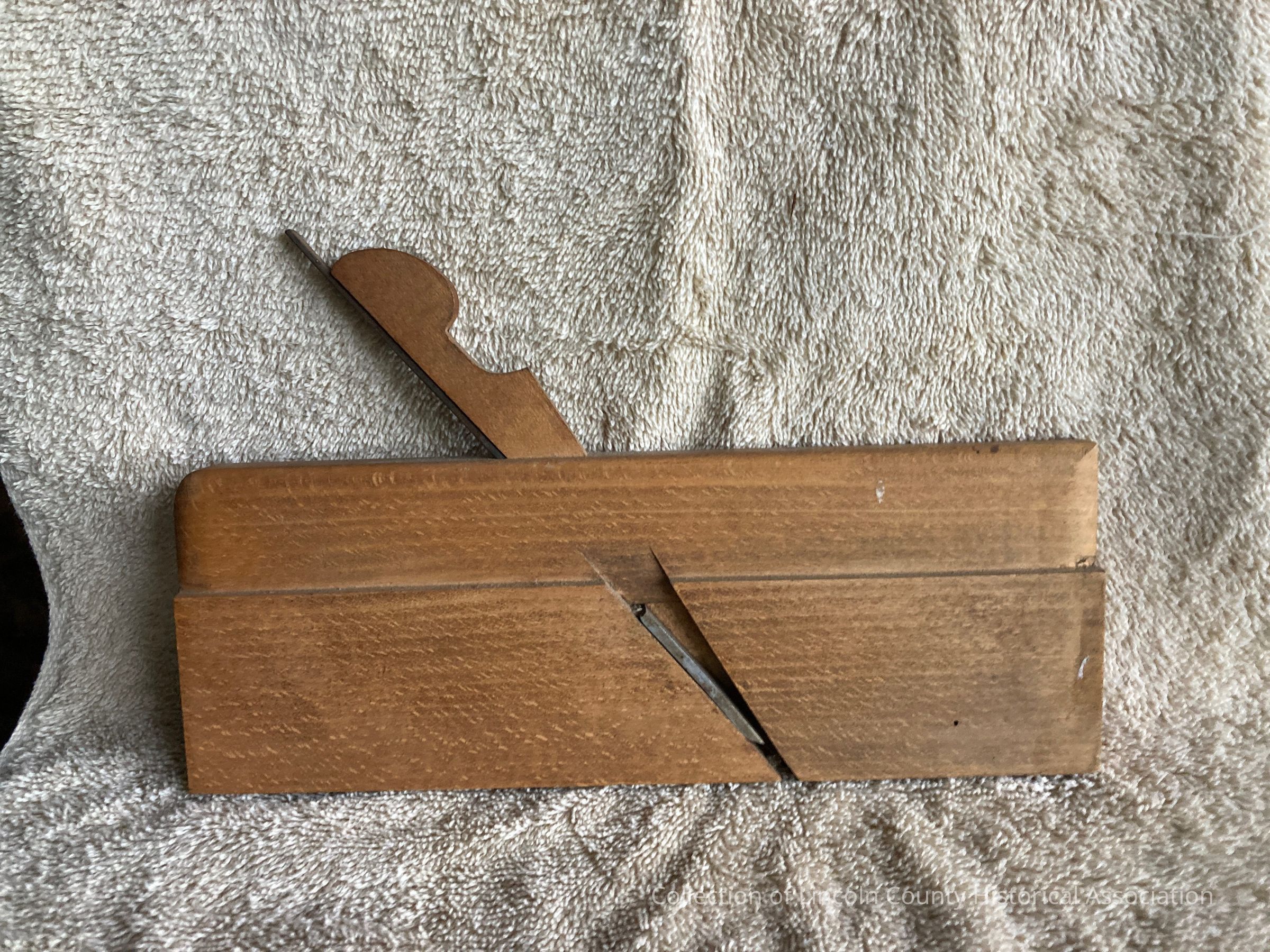 Beech wood hollow convex moulding plane designed to cut a narrow, shallow hollow. Its iron blade ends with a steel cutting edge.Made/Created
