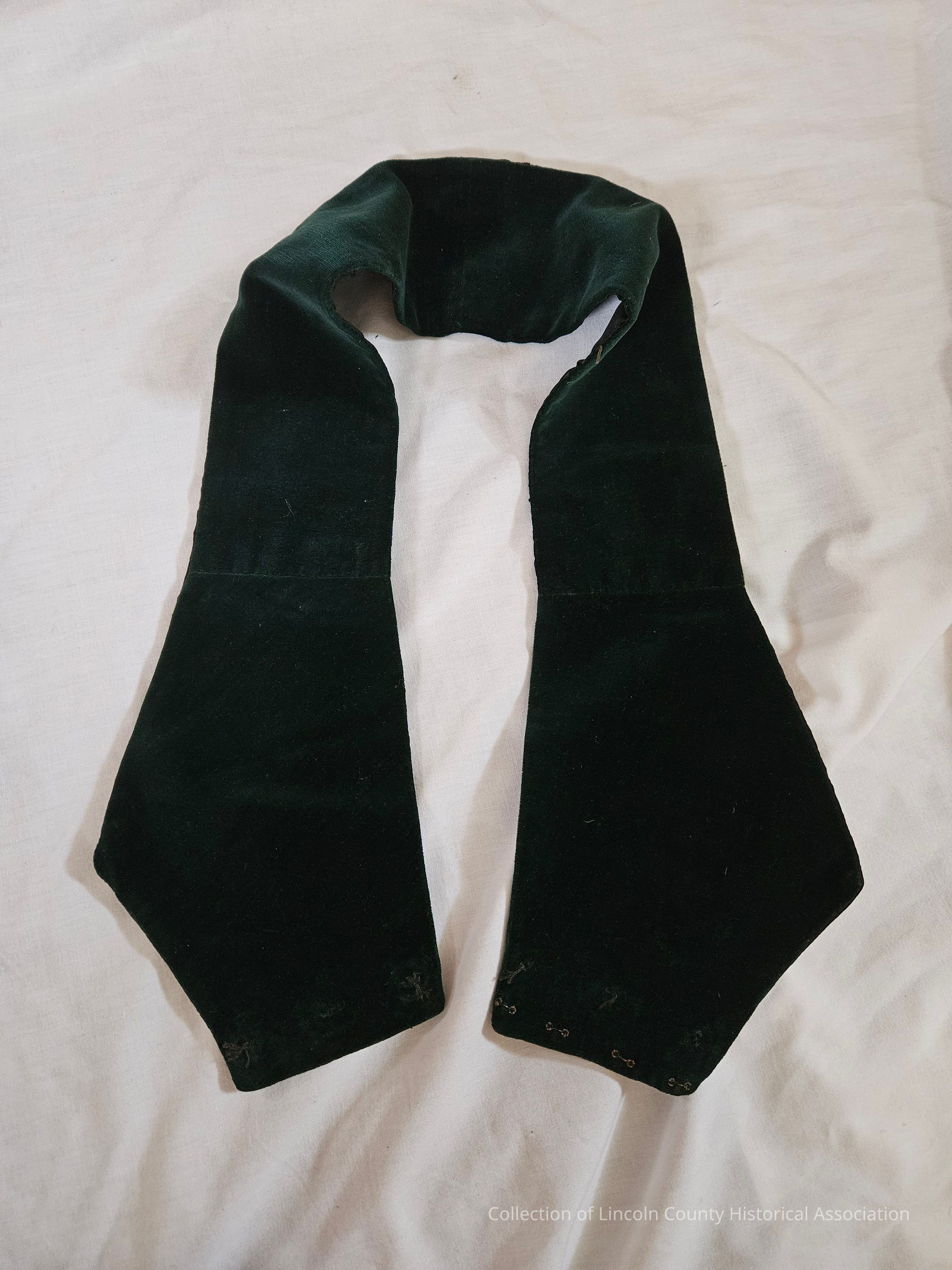 Green velvet collar with black silk lining. Four hook closures at the ends.Clothing/Dress/Costume Details