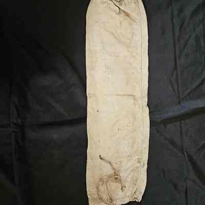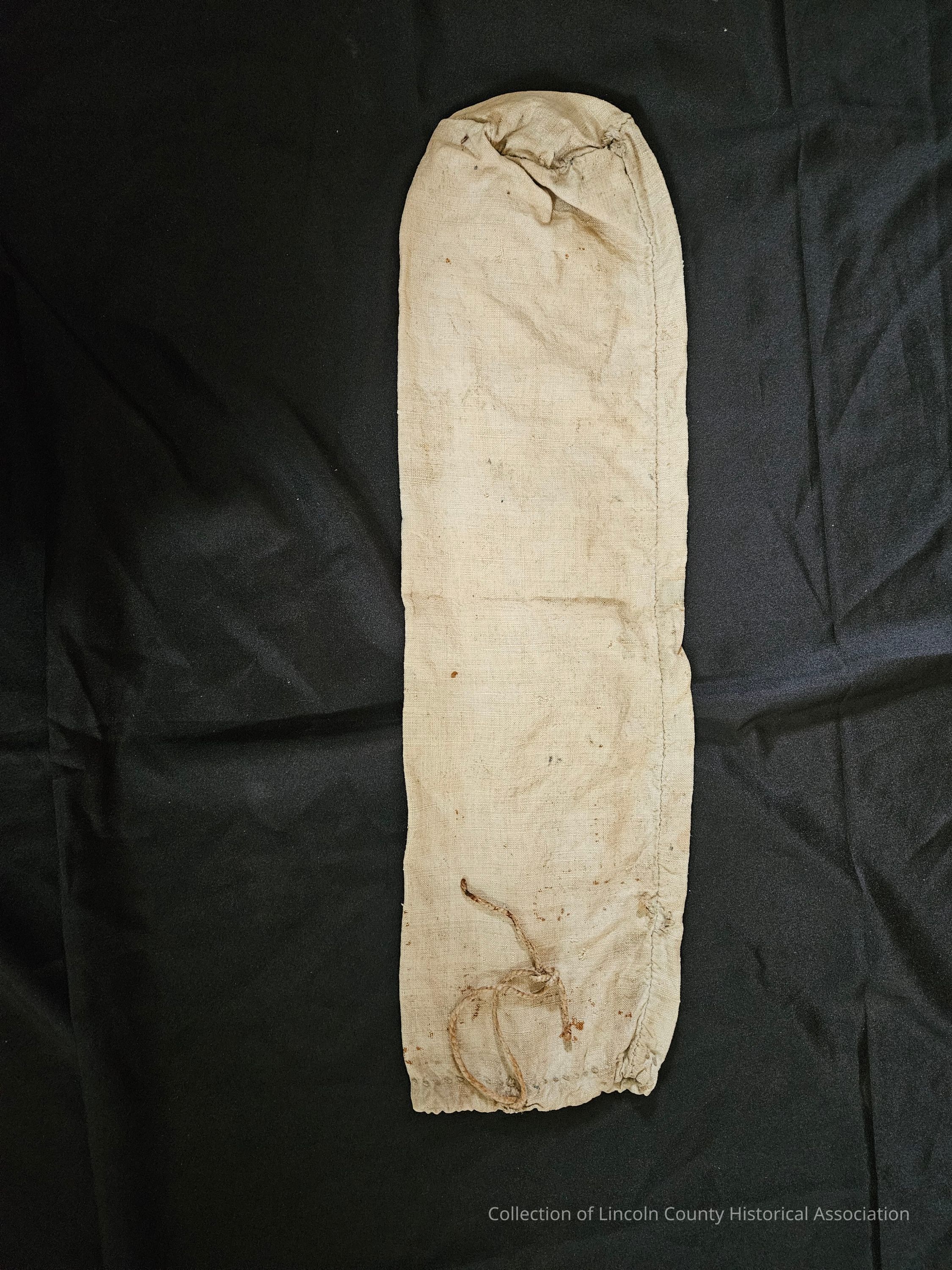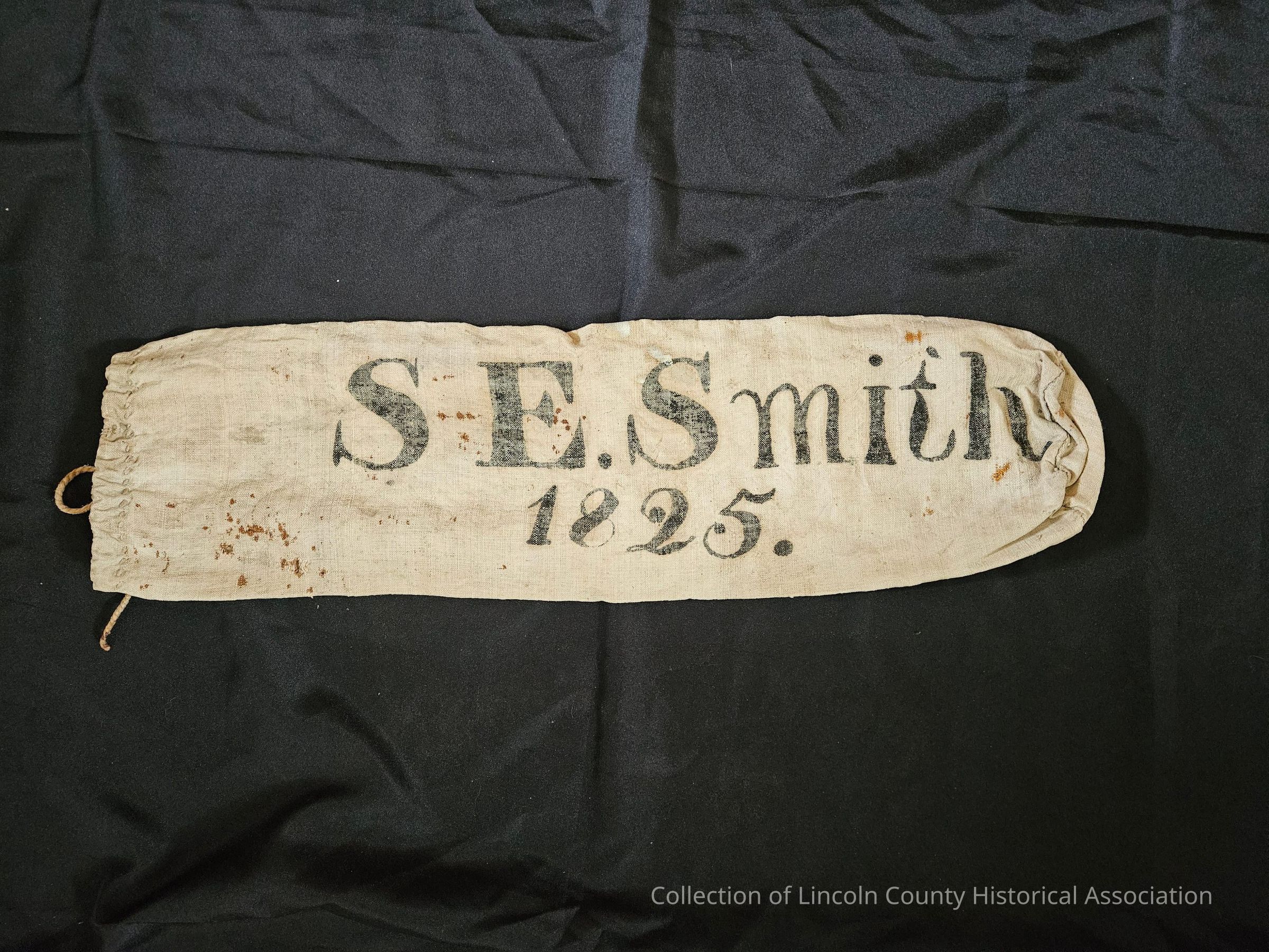 Tubular linen fireman's duffle bag. Hand sewn with adjustable string closure at the top. "S.E. Smith 1825" written on one side.Made/Created