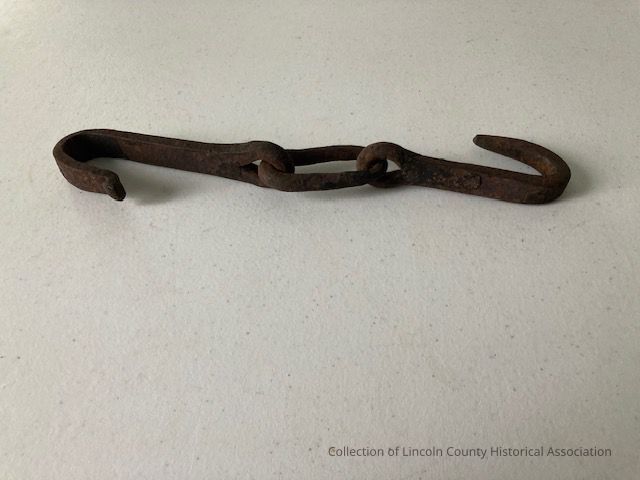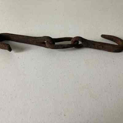 Wrought iron double hanging hook with the two hooks attached to a central ovalMade/Created