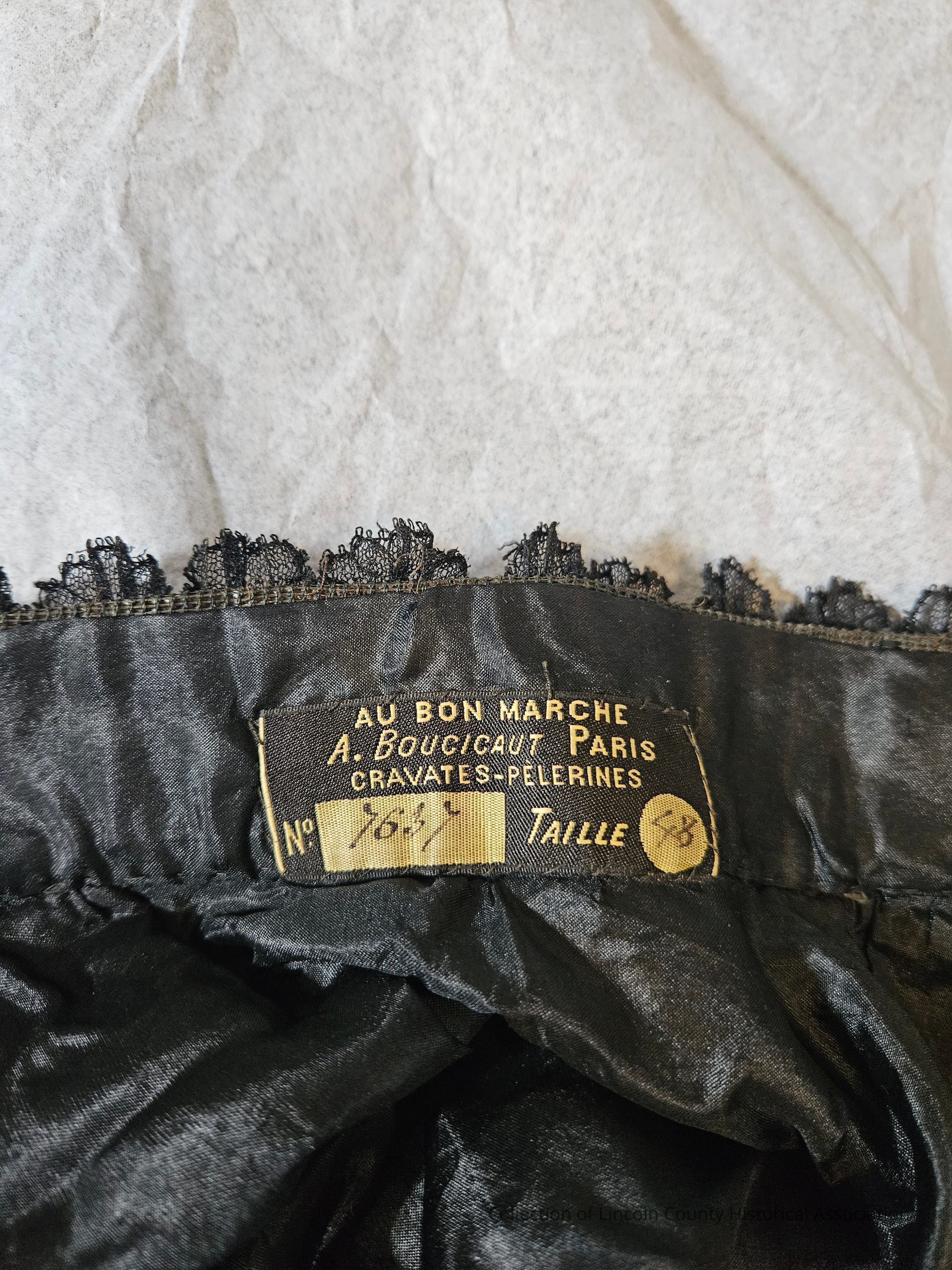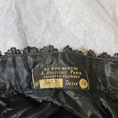 Au Bon Marche was an early Parisian department store partly owned by Aristide Boucicaut, whose name is also found on the label. It was in operation from 1848 to 1851, then the name was changed to Le Bon Marche.