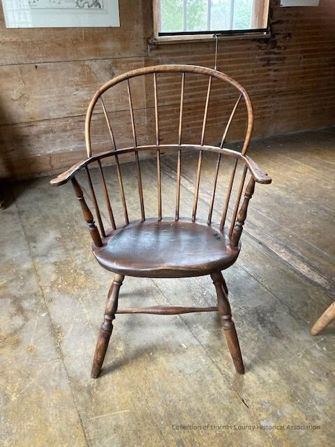 Sack-back Windsor armchair with turned legs and arm supports. Back with six spindles and each arm has two spindle supportsMade/Created