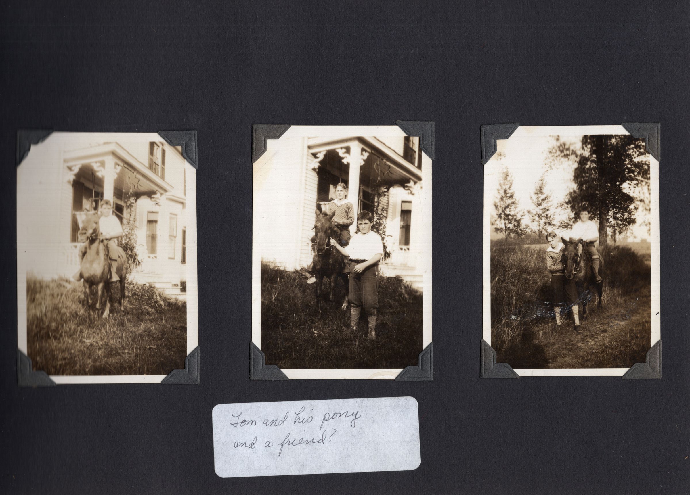 leatherette covered album, 7" x 11" Tom Flagg Sr.'s childhood photo album many photos identified