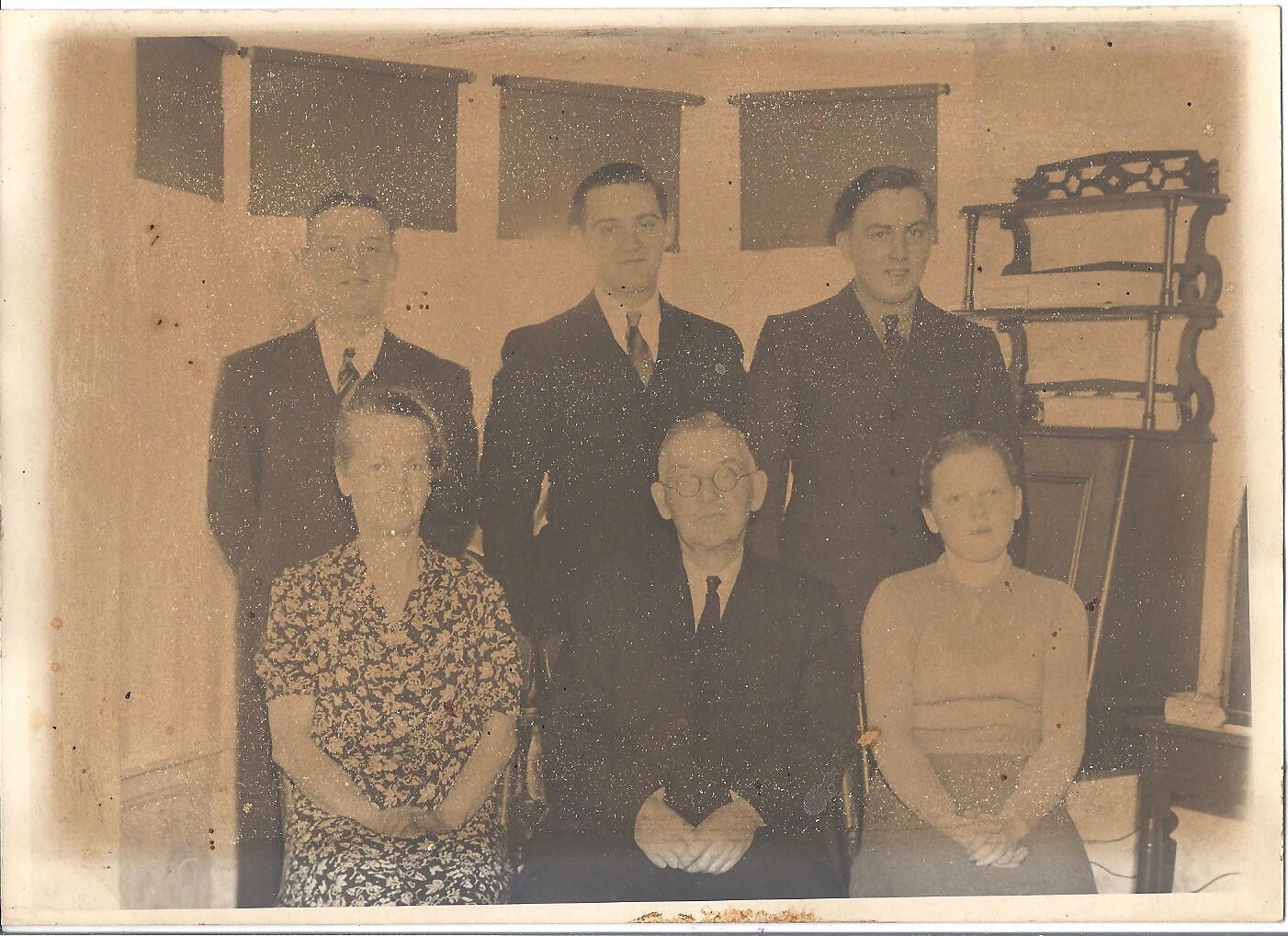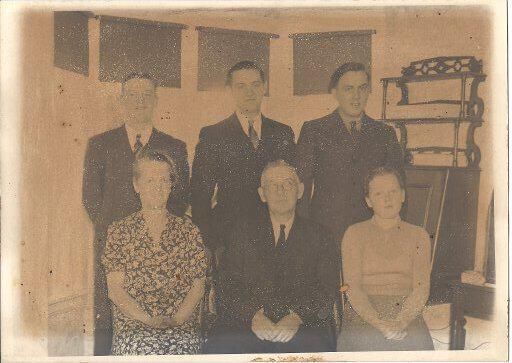 Flora and Will Thurlow with their four children, Ruth, and back row, Clarence, Maynard, Royce