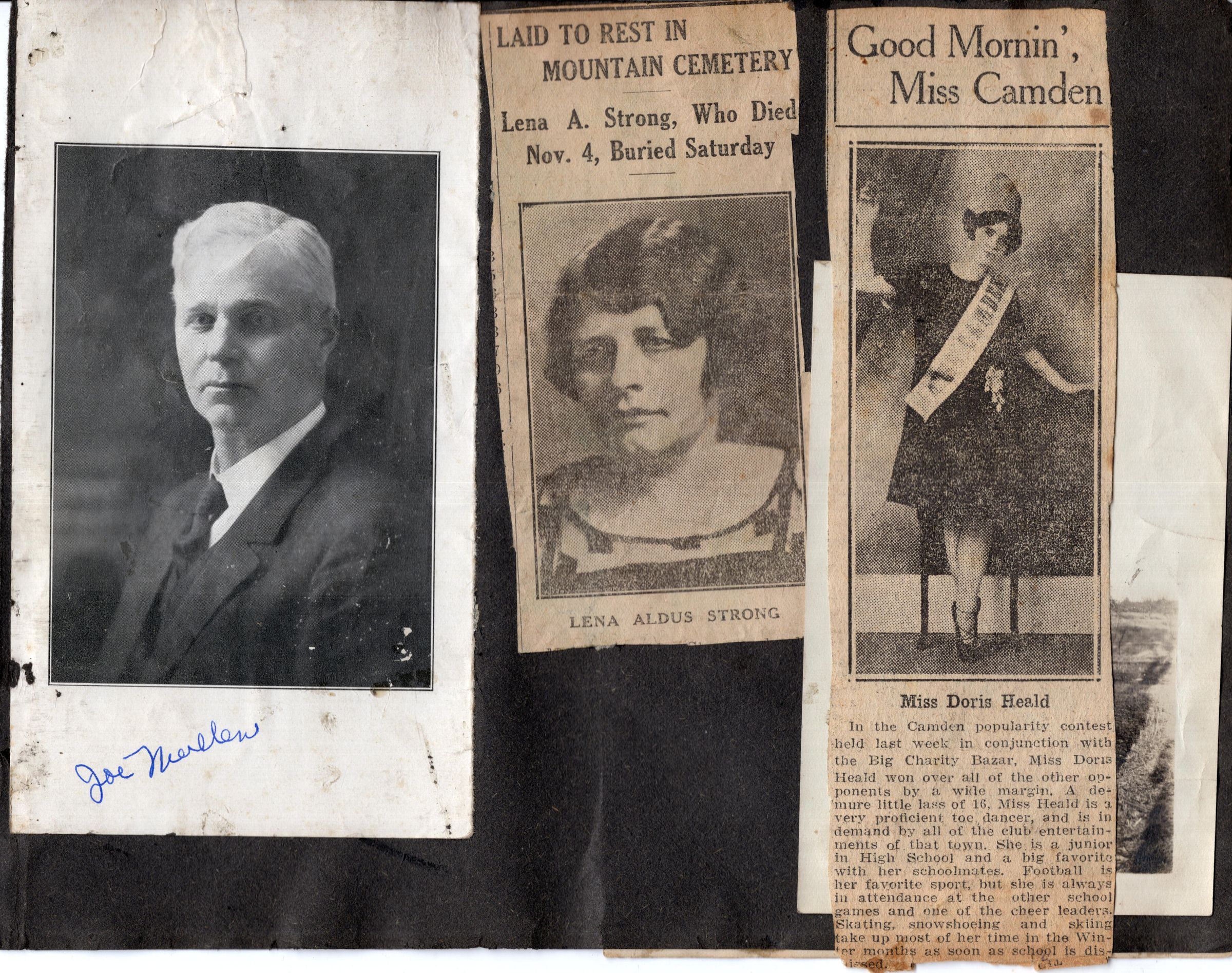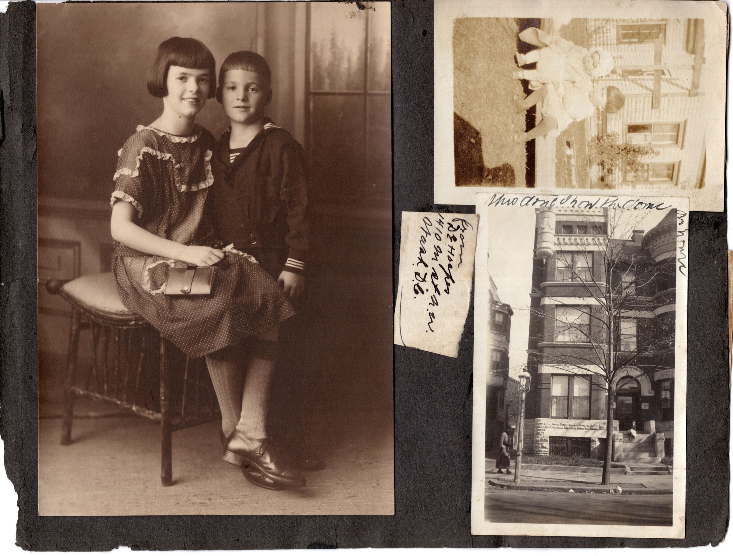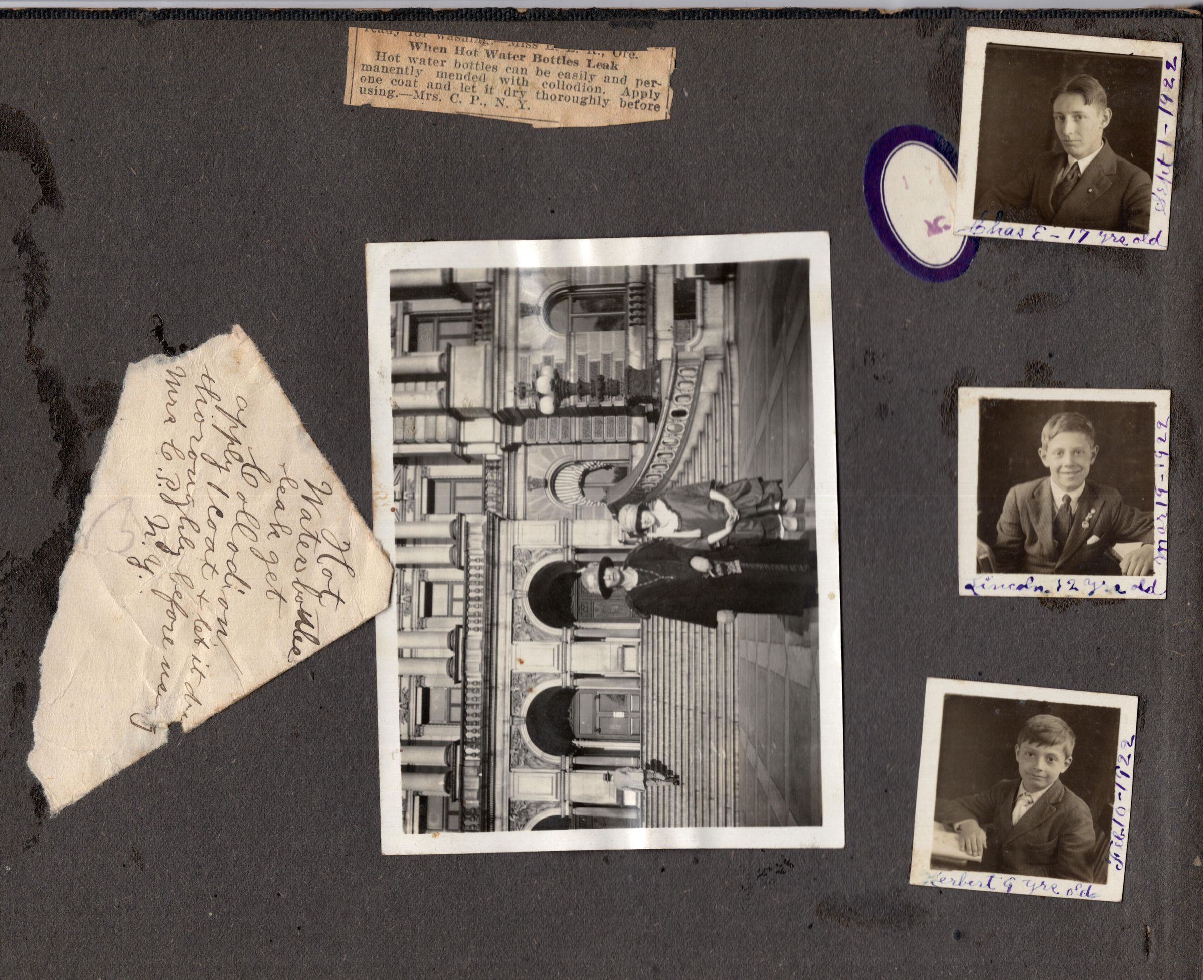 Box/binder containing photos and some clippings taken from a scrapbook. Each page is faced by a (poor) photocopy of that pageRelationships