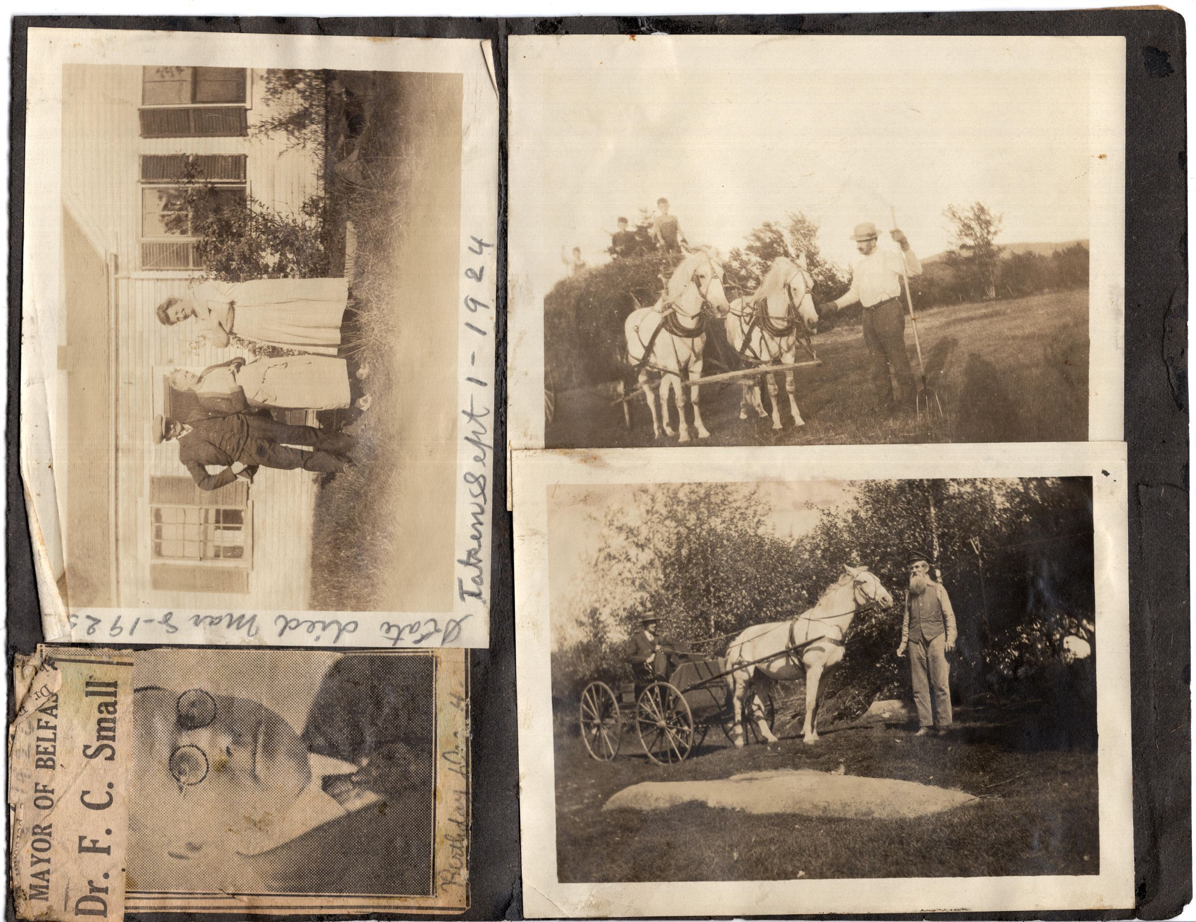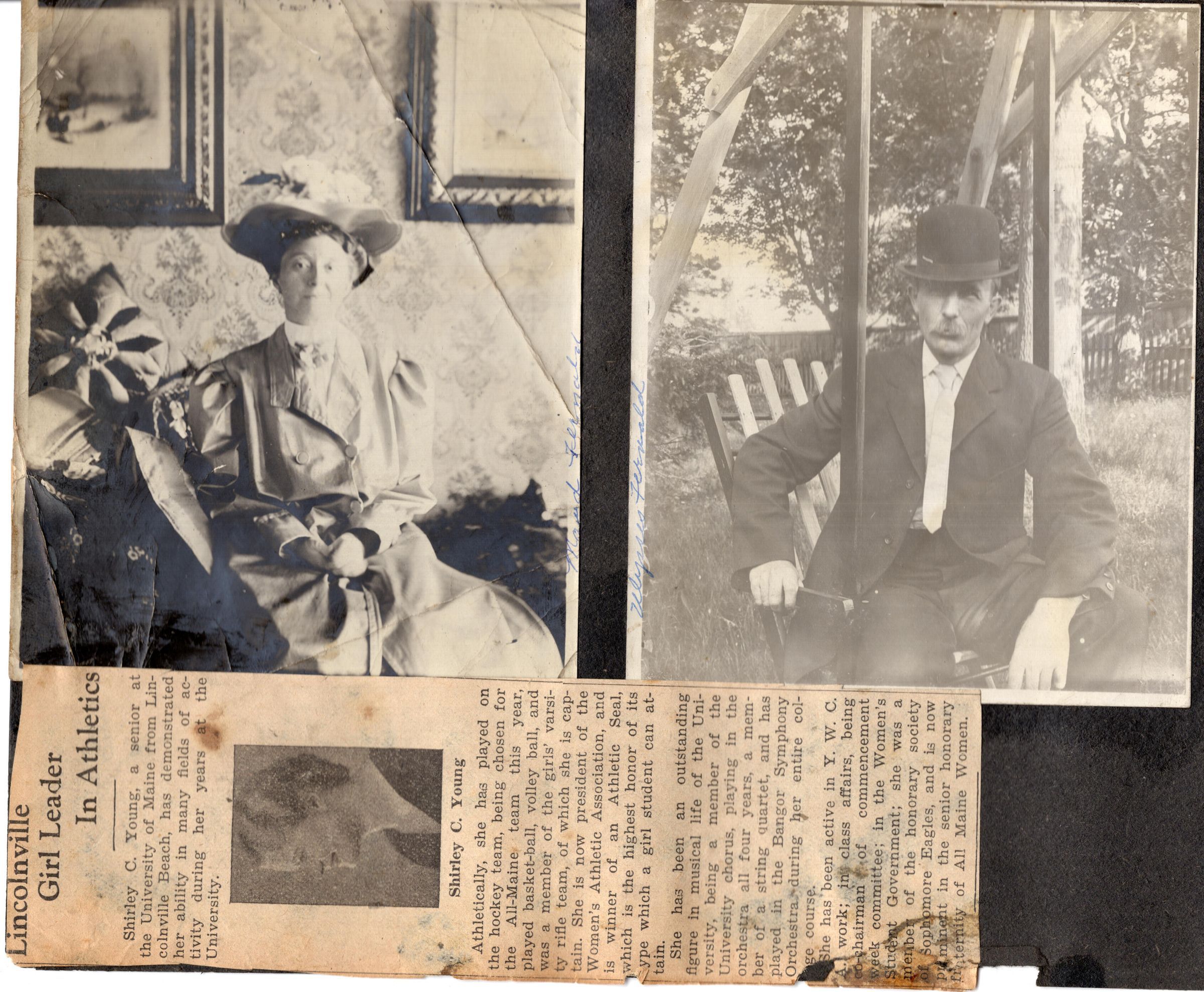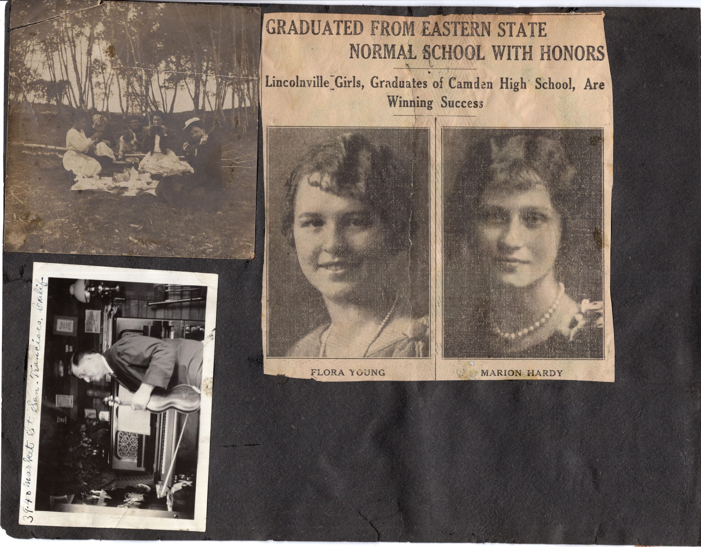 Box/binder containing photos and some clippings taken from a scrapbook. Each page is faced by a (poor) photocopy of that pageRelationships