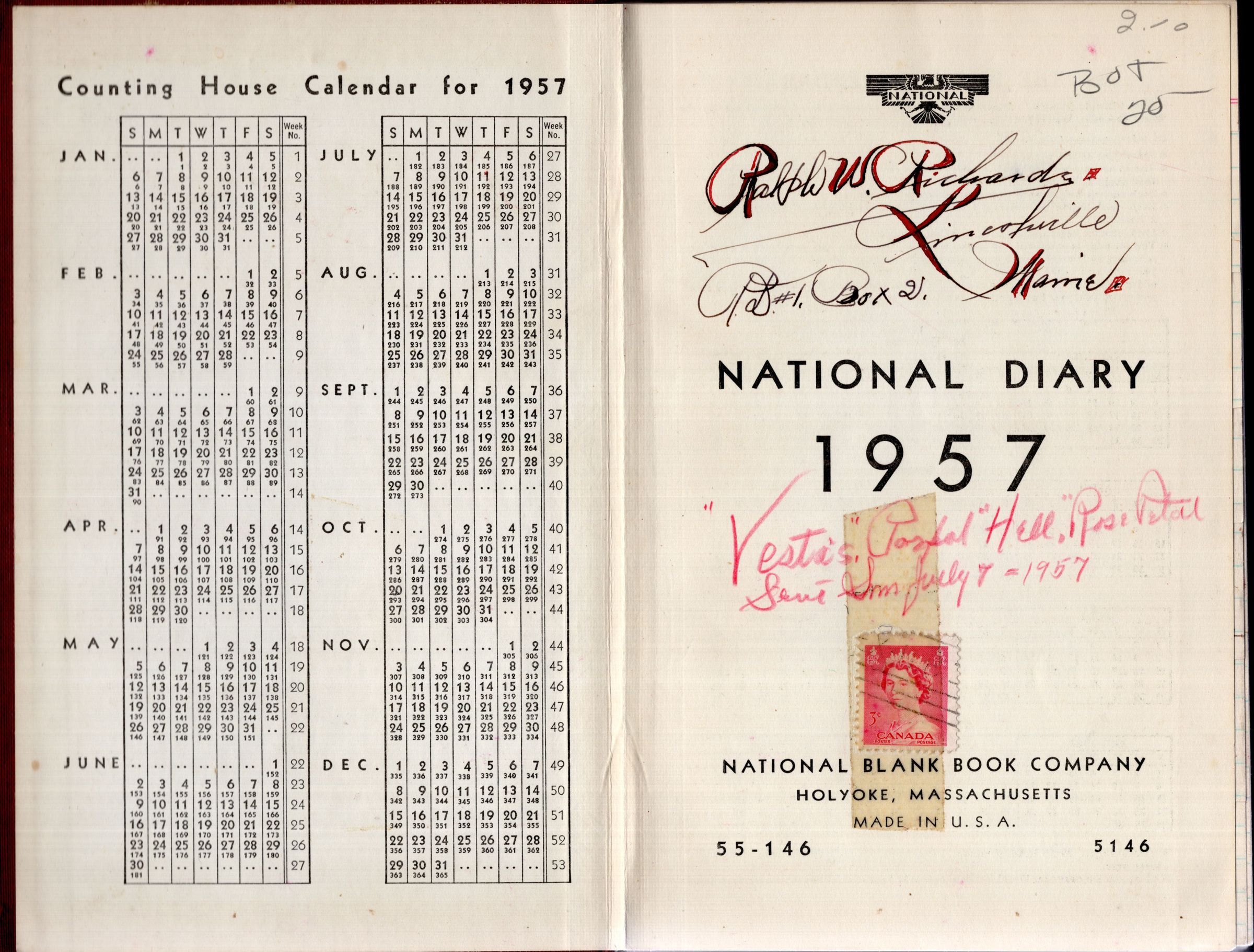 Ralph Richards 1957 DiaryEntry/Object ID