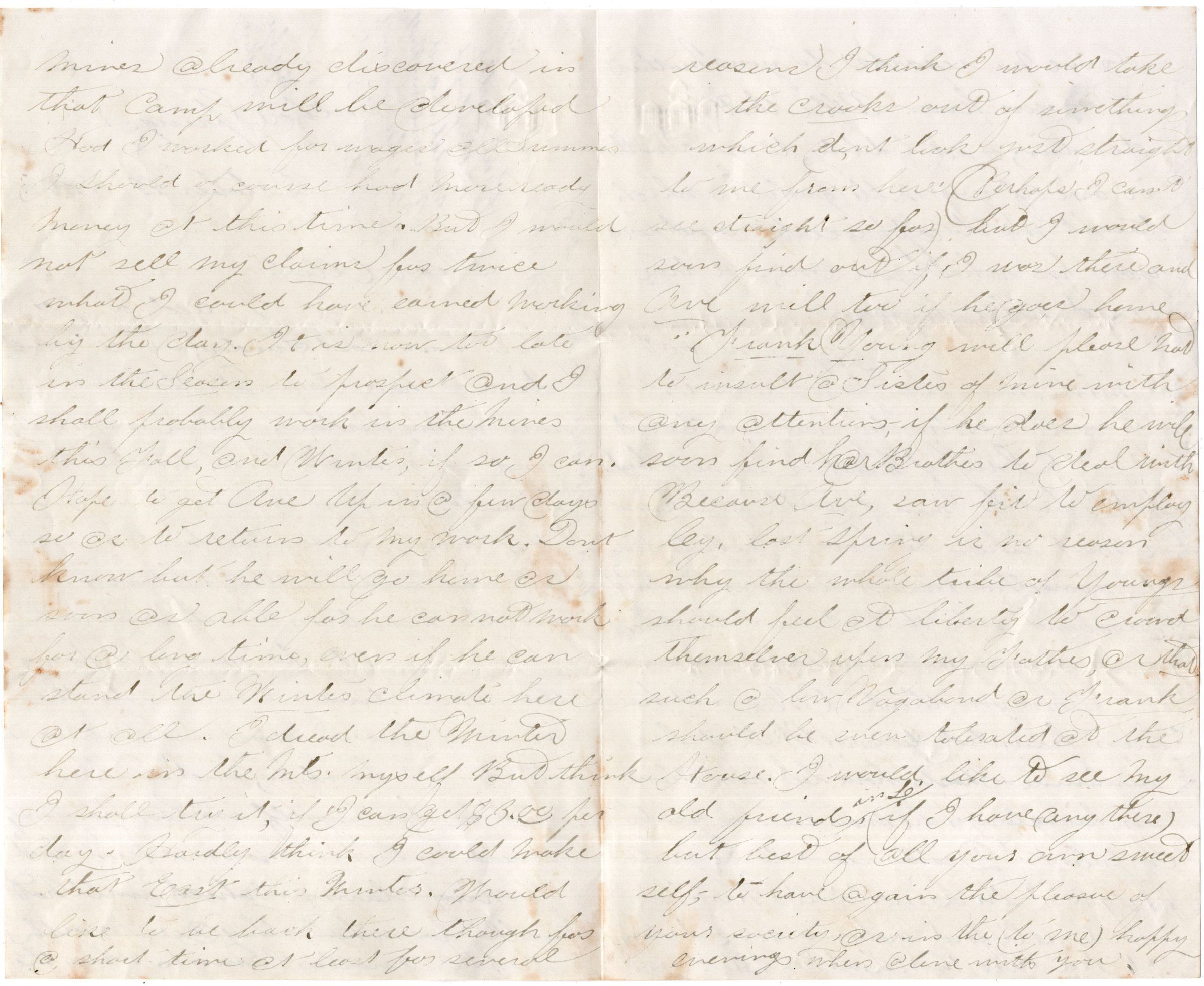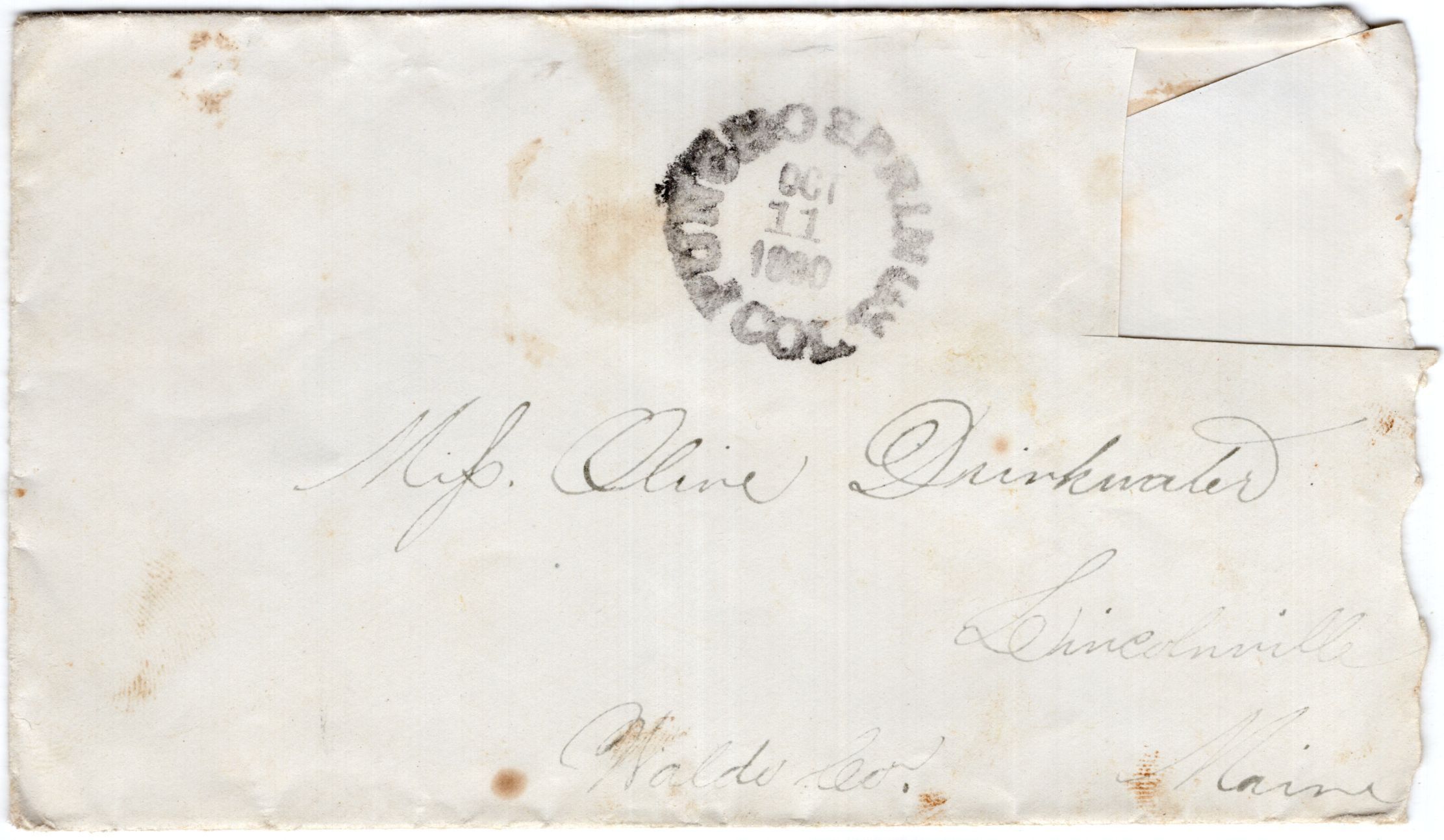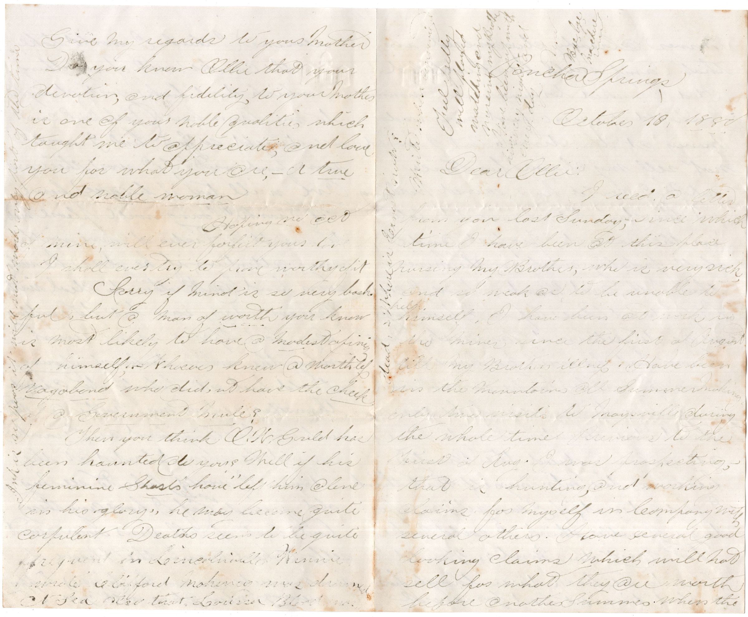 Knight Collection - 1880 Letter; Dated October 18th; Written by Arno Knight to Olive Drinkwater; Arno is working in Colorado