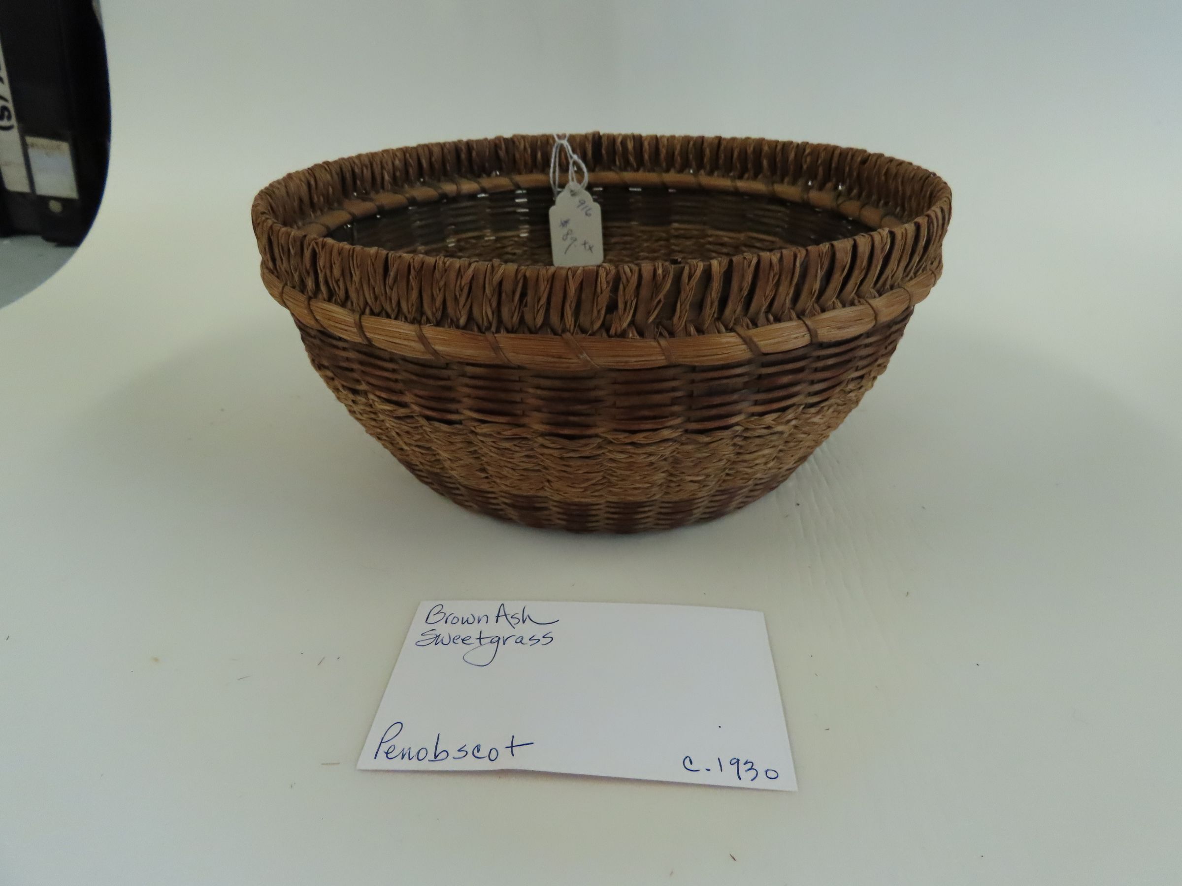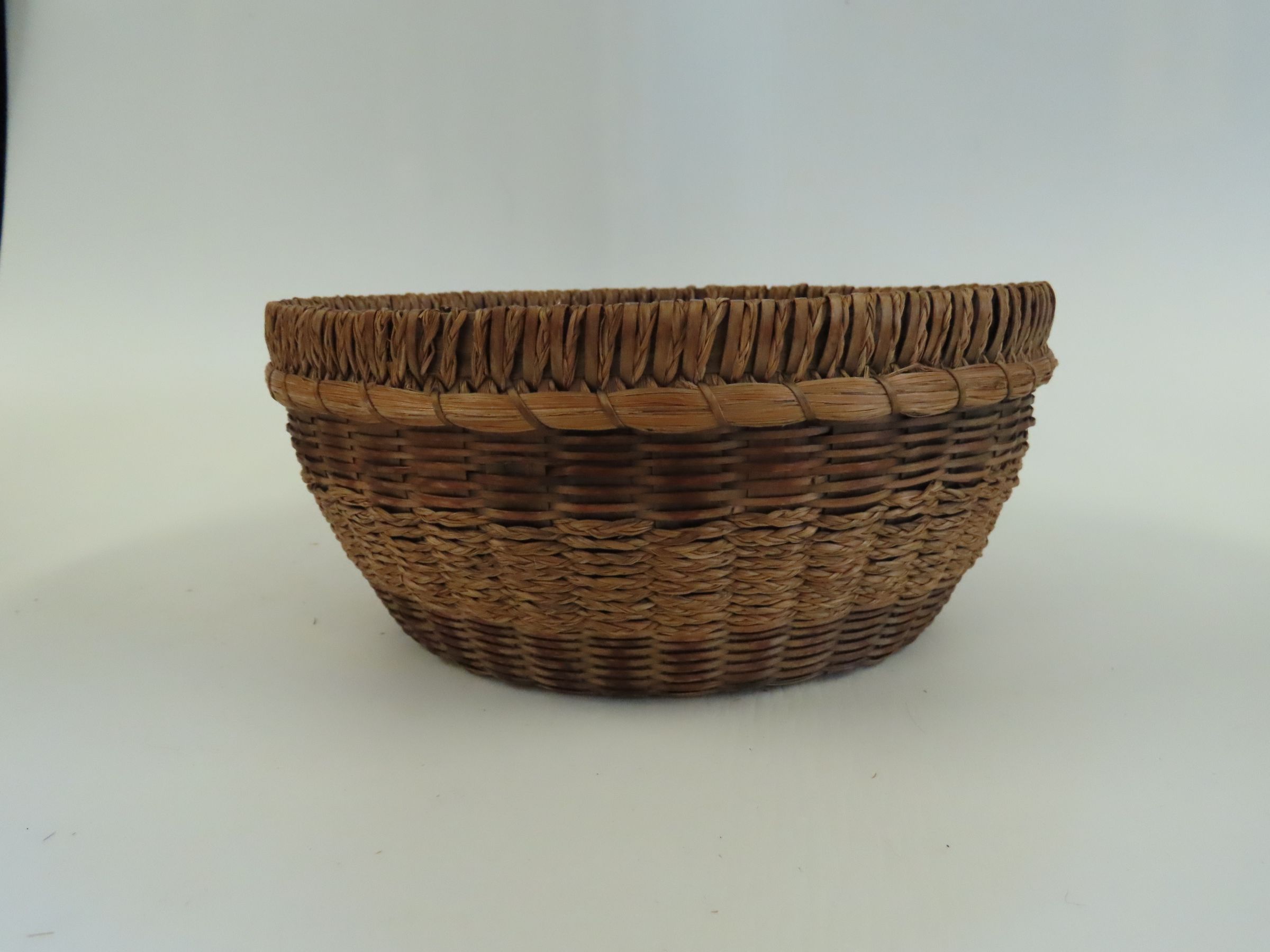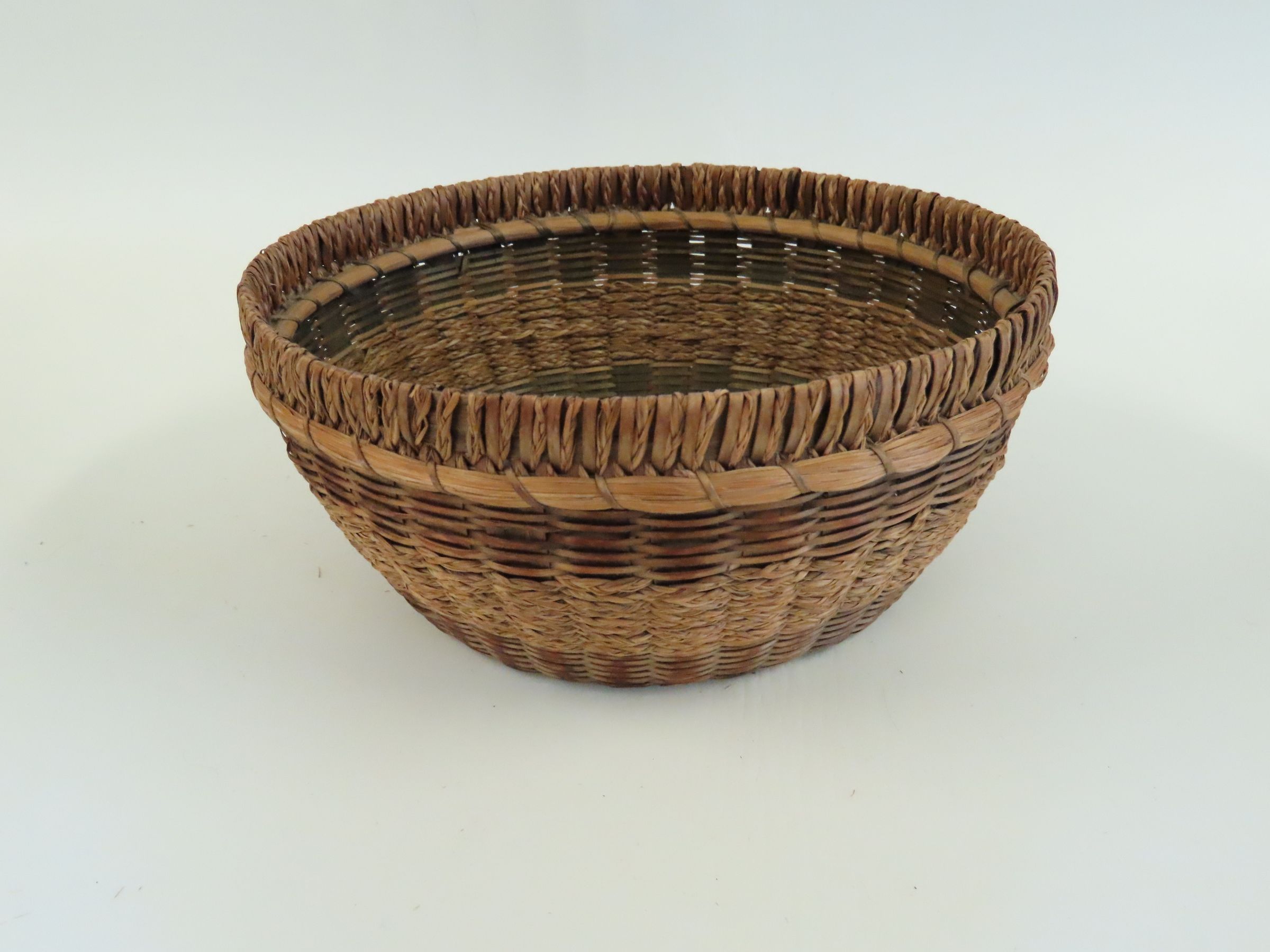 Round Woven Basket made of Brown Ash and Sweetgrass, circa 1930