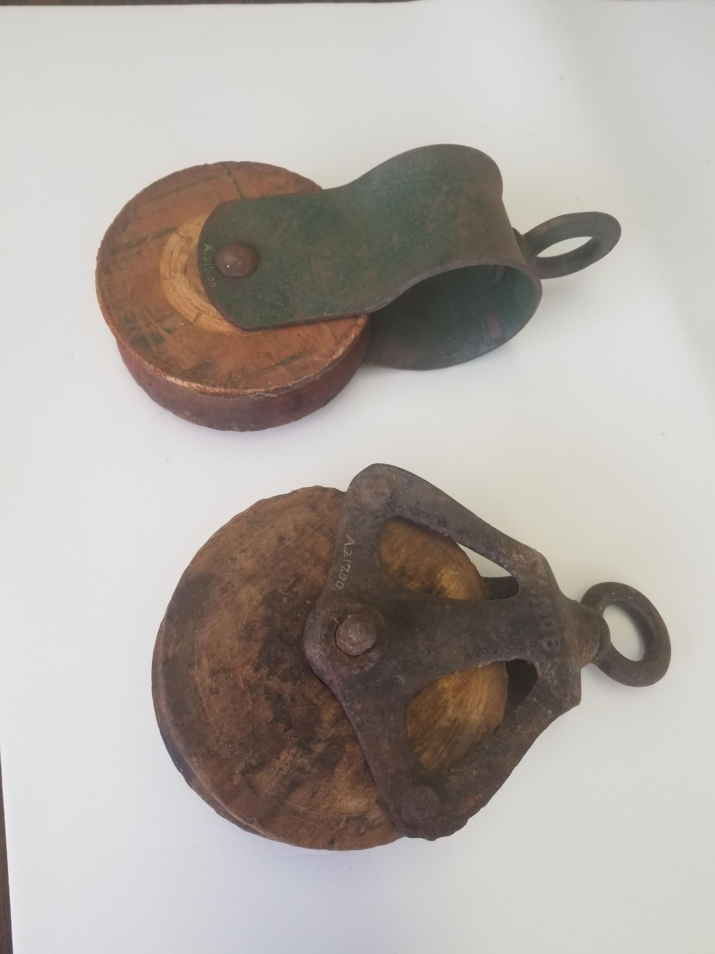 Two Pulleys Donated by Bessie Dean from the farm of Melvin Dickey
